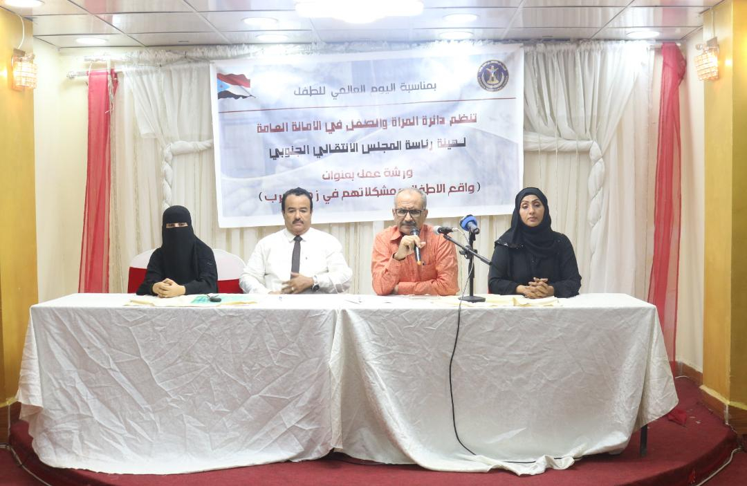 بحضور الجعدي.. دائرة المرأة والطفل تنظم ورشة عمل حول "واقع الأطفال ومشكلاتهم في زمن الحرب" نظمت دائرة المرأه والطفل بالأمانة العامة لهئية رئاسة المجلس الانتقالي الجنوبي، اليوم الأربعاء، بالعا...