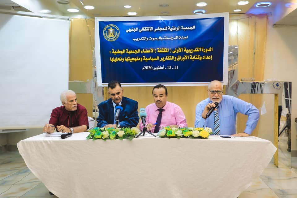 لجنة الدراسات والبحوث والتدريب في الجمعية الوطنية تدشن الدورة التدريبية في "إعداد وكتابة الأوراق والتقارير السياسية" دشنت لجنة الدراسات والبحوث والتدريب في الجمعية الوطنية للمجلس الانتقالي الجنوبي، اليوم الأحد في العا...