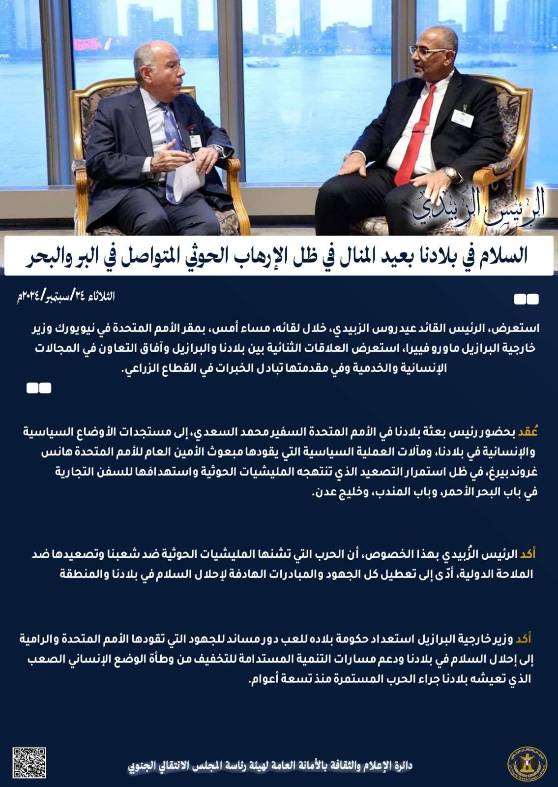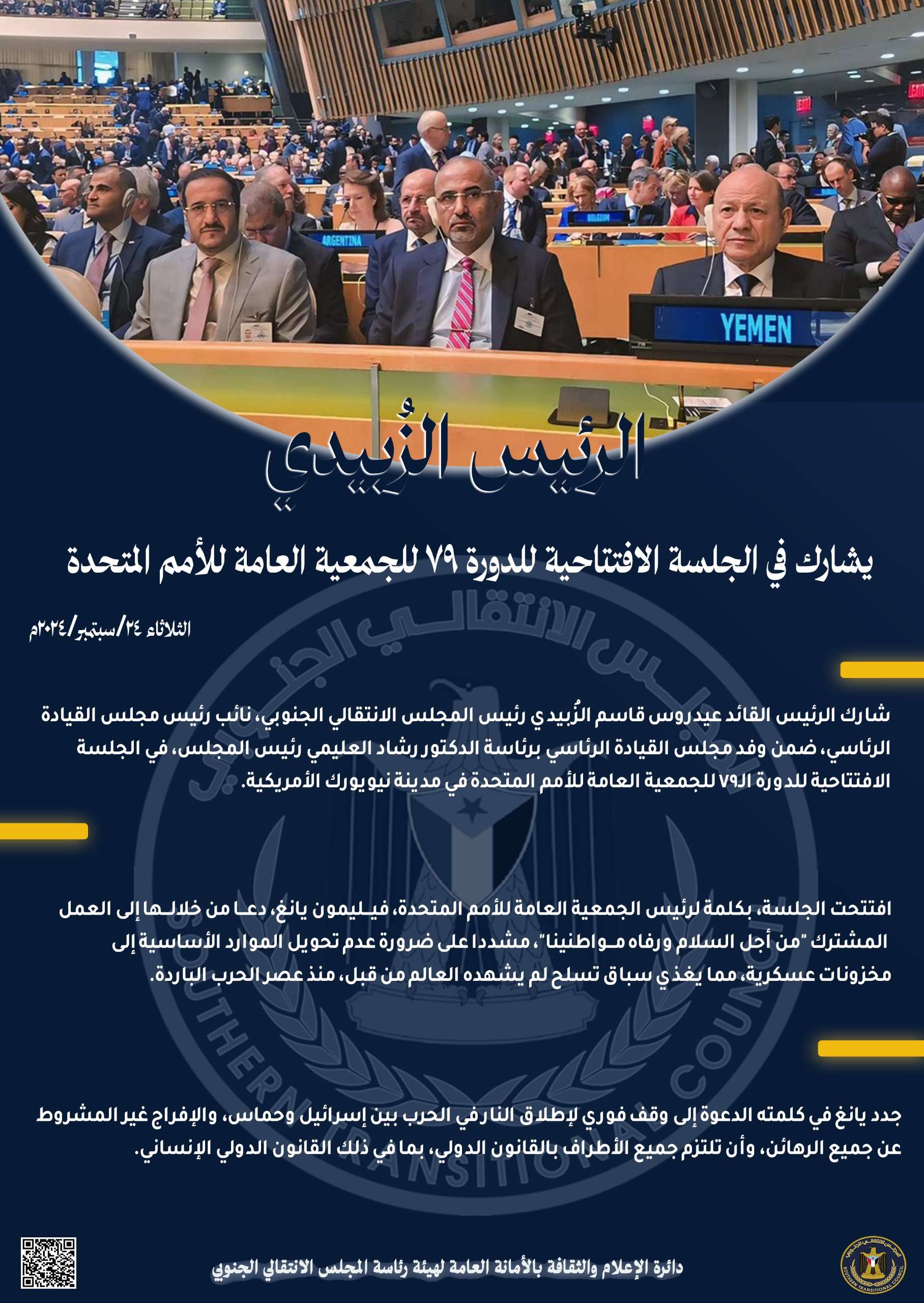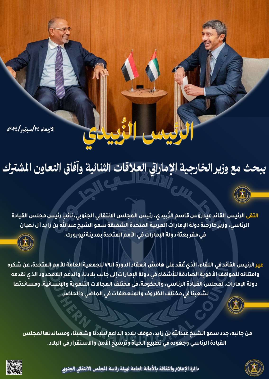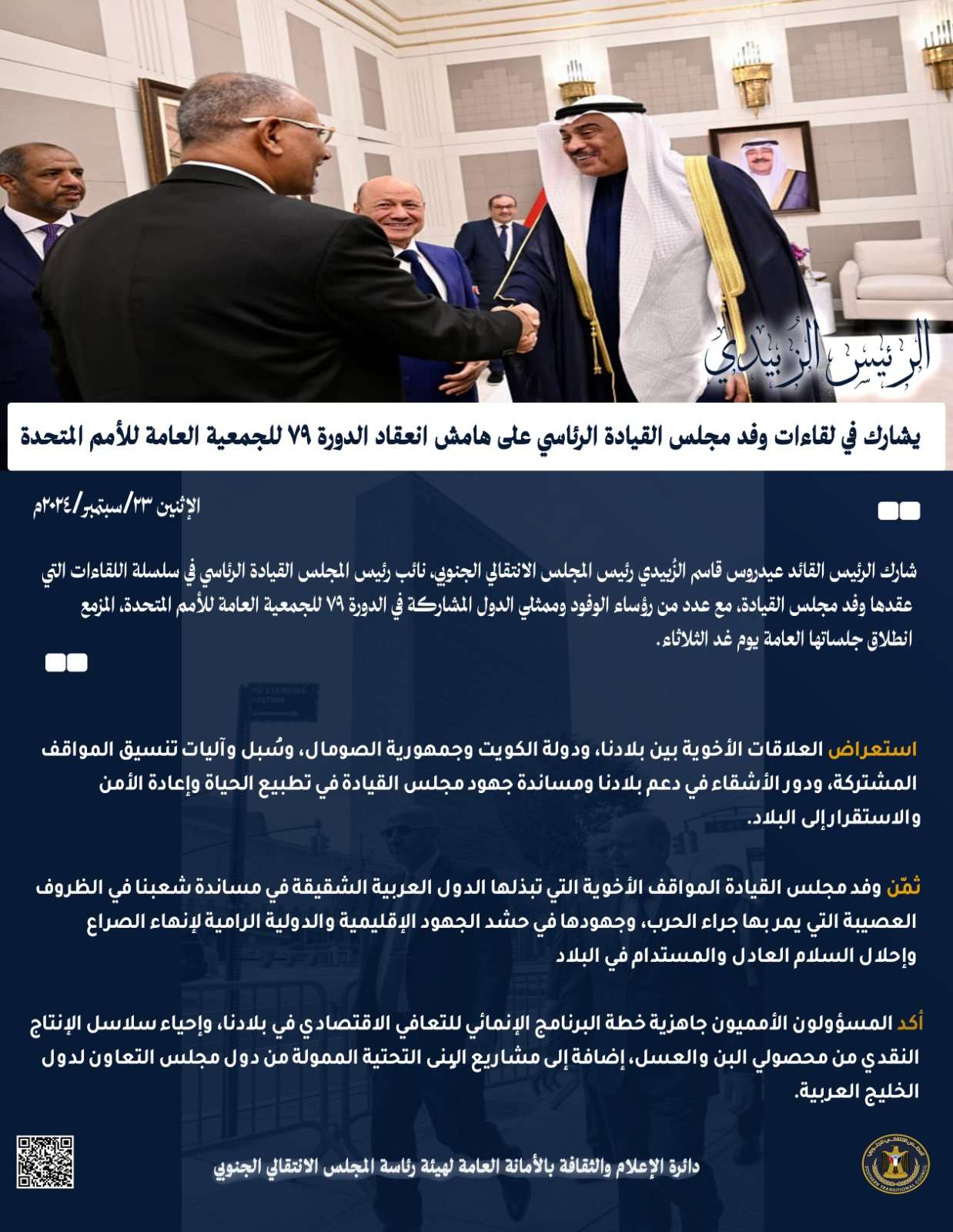 الرئيس الزُبيدي يشارك في لقاءات وفد مجلس القيادة الرئاسي على هامش انعقاد الدورة 79 للجمعية العامة لل...