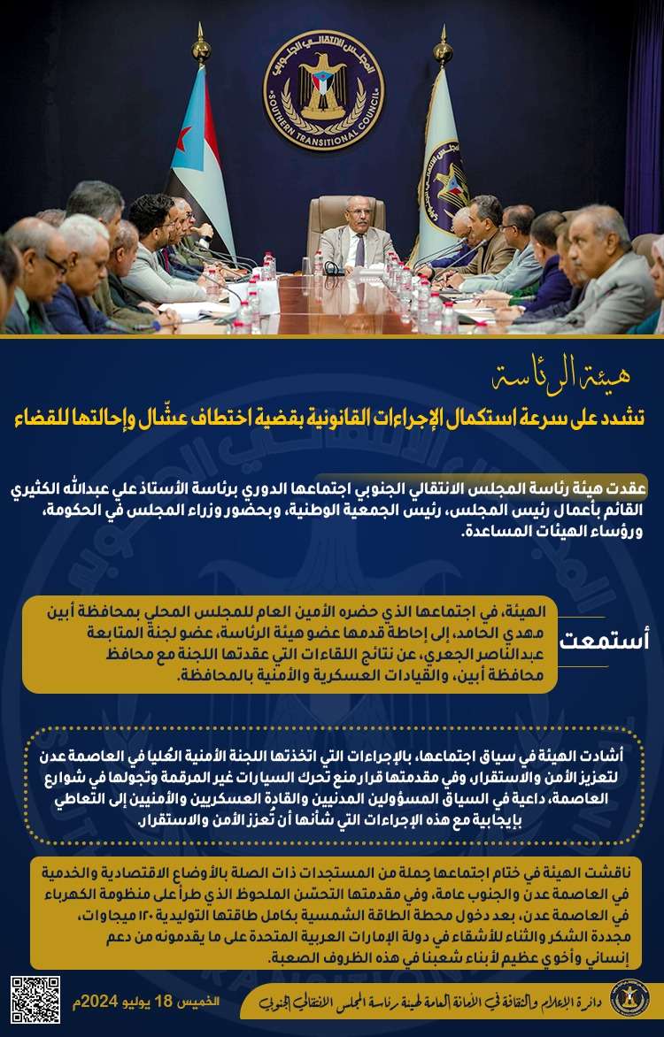 هيئة الرئاسة تشدد على سرعة استكمال الإجراءات القانونية بقضية اختطاف عشّال وإحالتها للقضاء