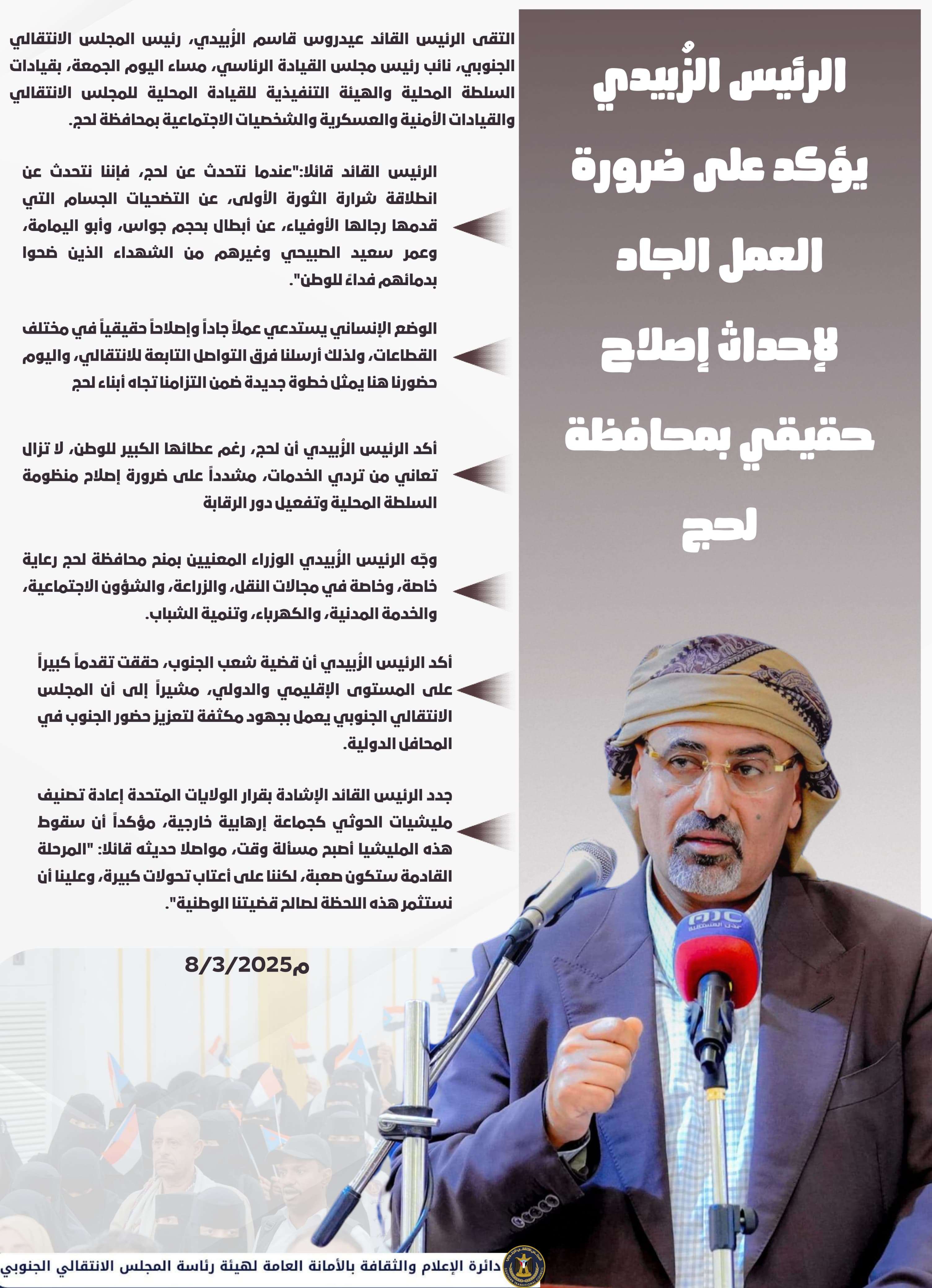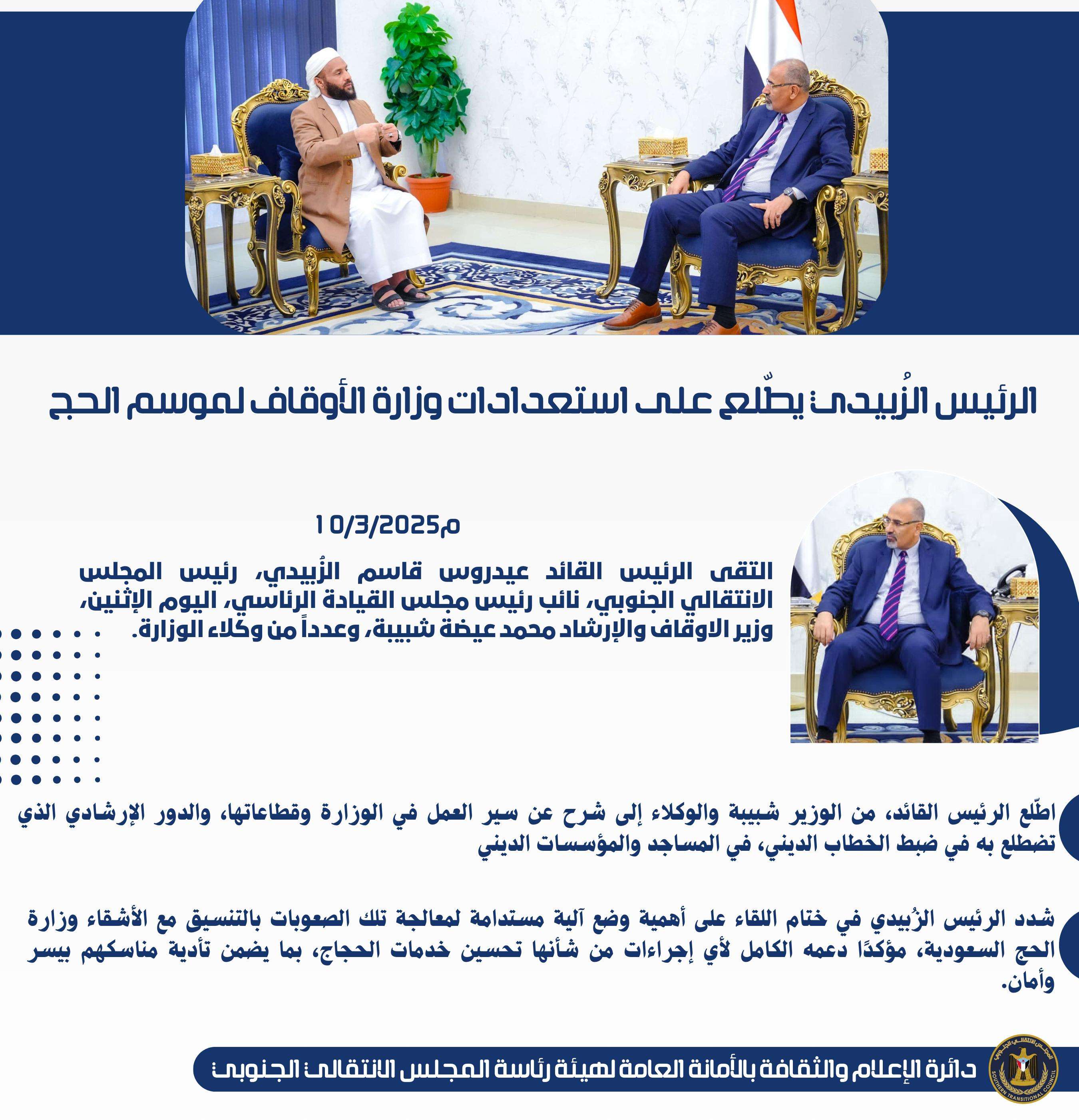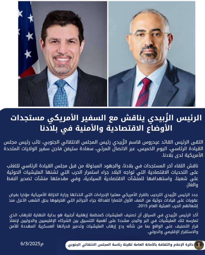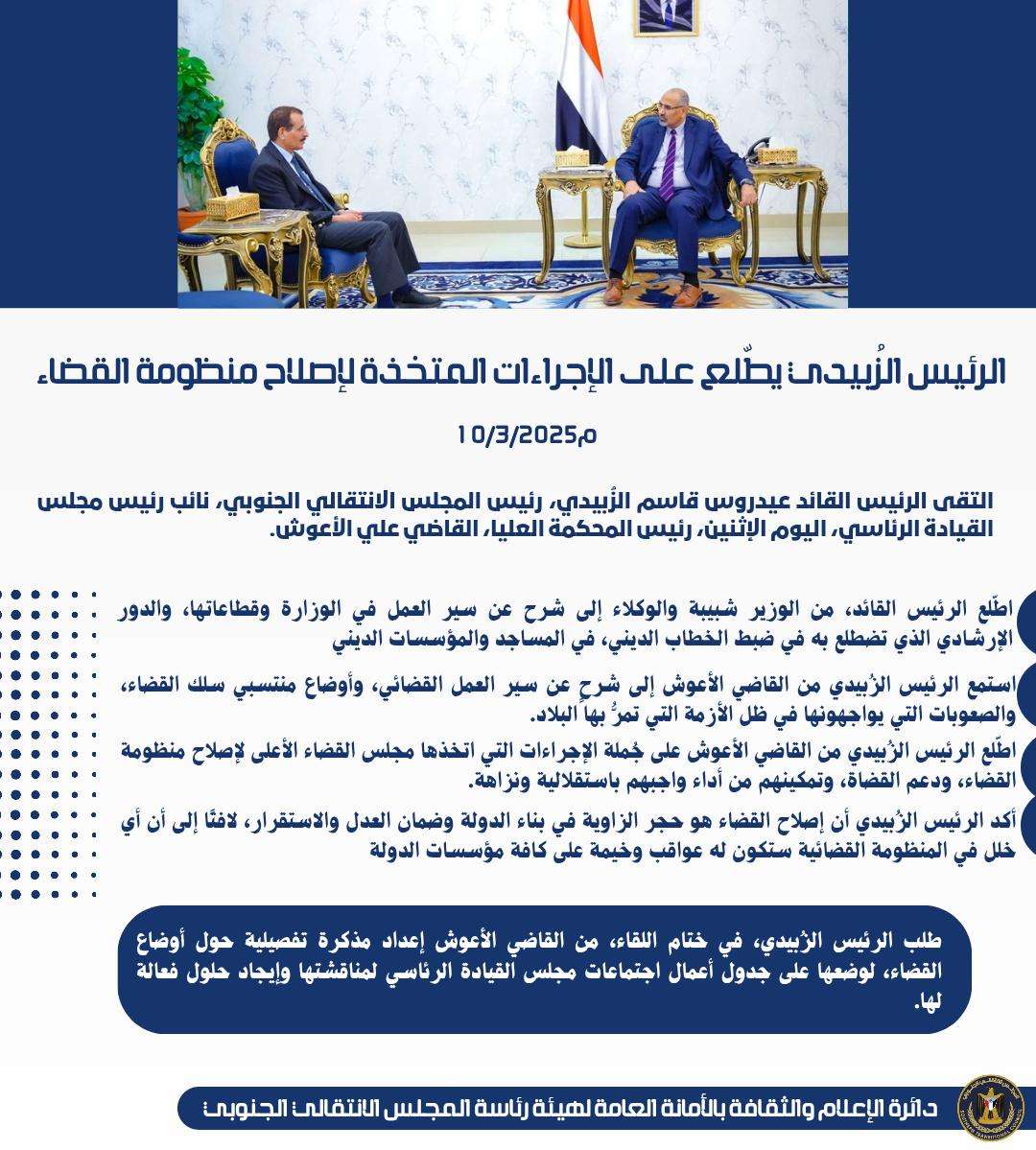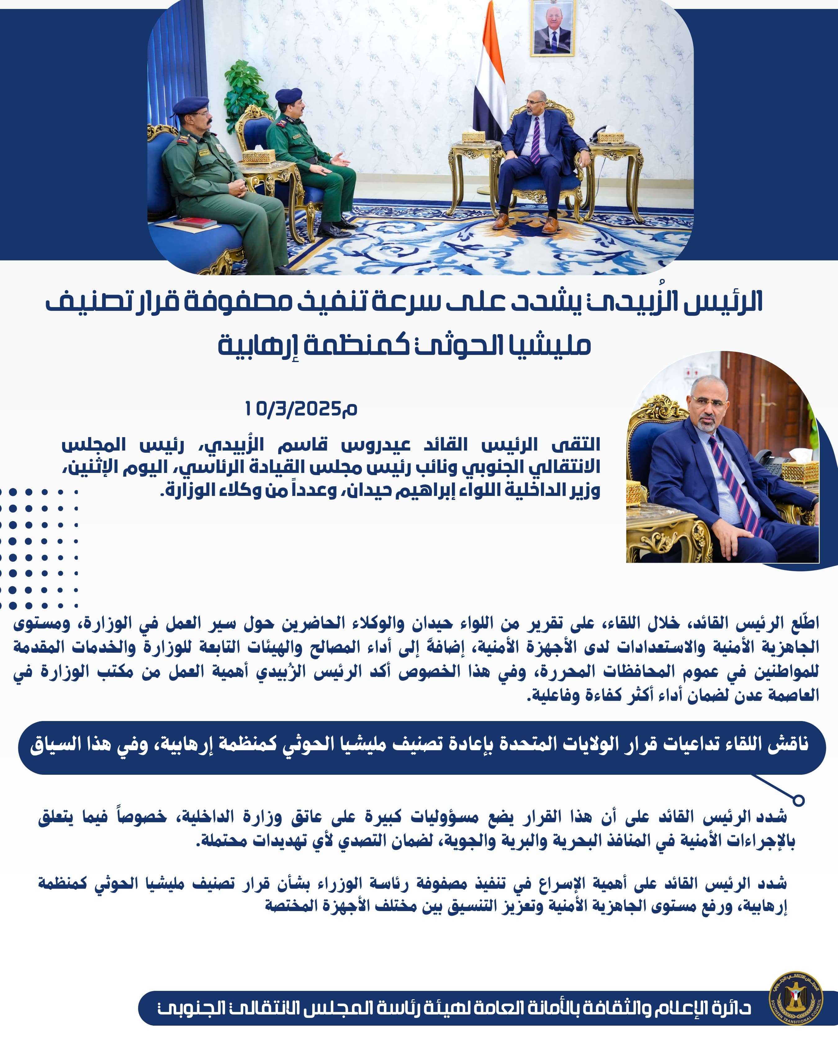 صدور قرار رئيس المجلس الانتقالي الجنوبي رقم (7) لعام 2025 بشأن تعيين رئيس للهيئة التنفيذية للقيادة ا...
