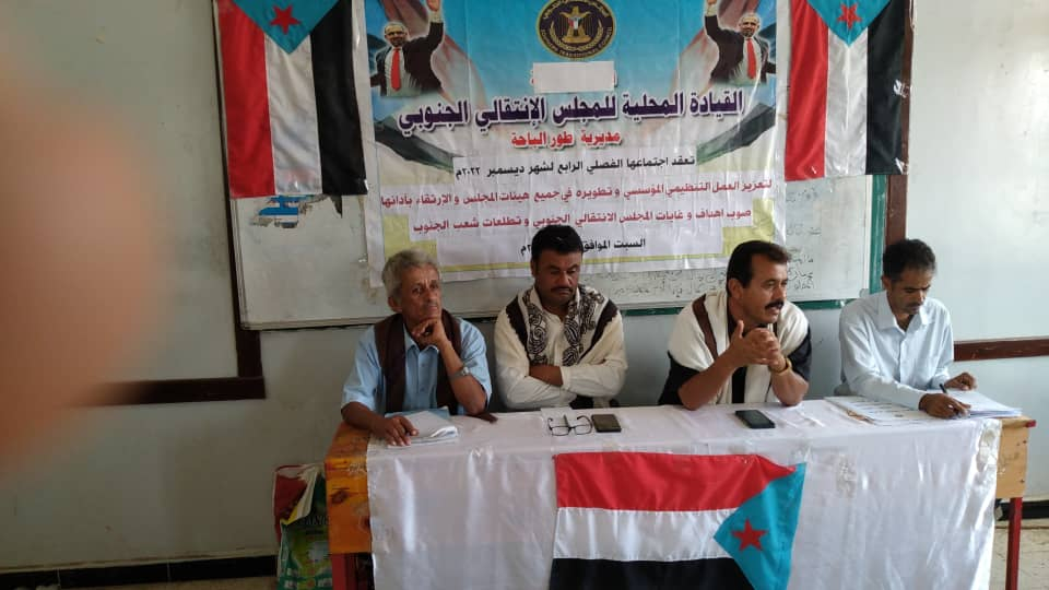 تنفيذية انتقالي طورالباحة تعقد اجتماعها الدوري لشهر ديسمبر عقدت الهيئة التنفيذية للمجلس الانتقالي الجنوبي في مديرية طور الباحة بمحافظة لحج، اليوم الخميس، اجتما...