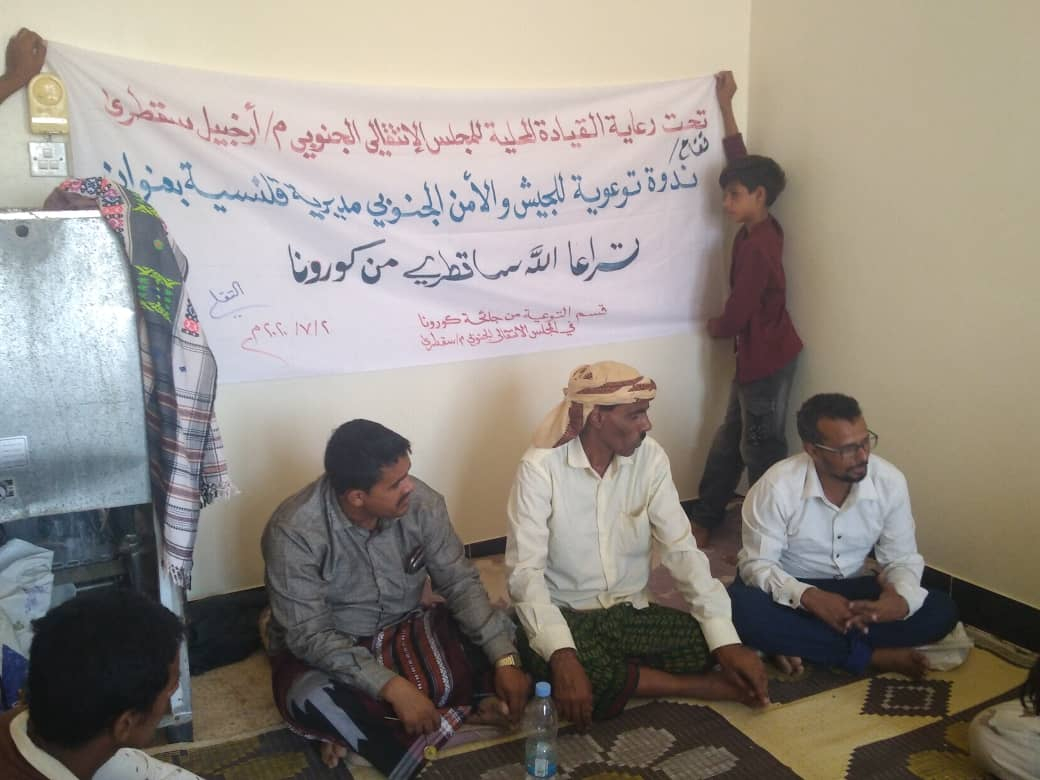 لجنة مجابهة كورونا بانتقالي سقطرى توعي منتسبي القوات الجنوبية بقلنسية من مخاطر الجائحة نفذت لجنة مجابهة فيروس كورونا المستجد التابعة للقيادة المحلية للمجلس الانتقالي الجنوبي بمحافظة أرخبي...