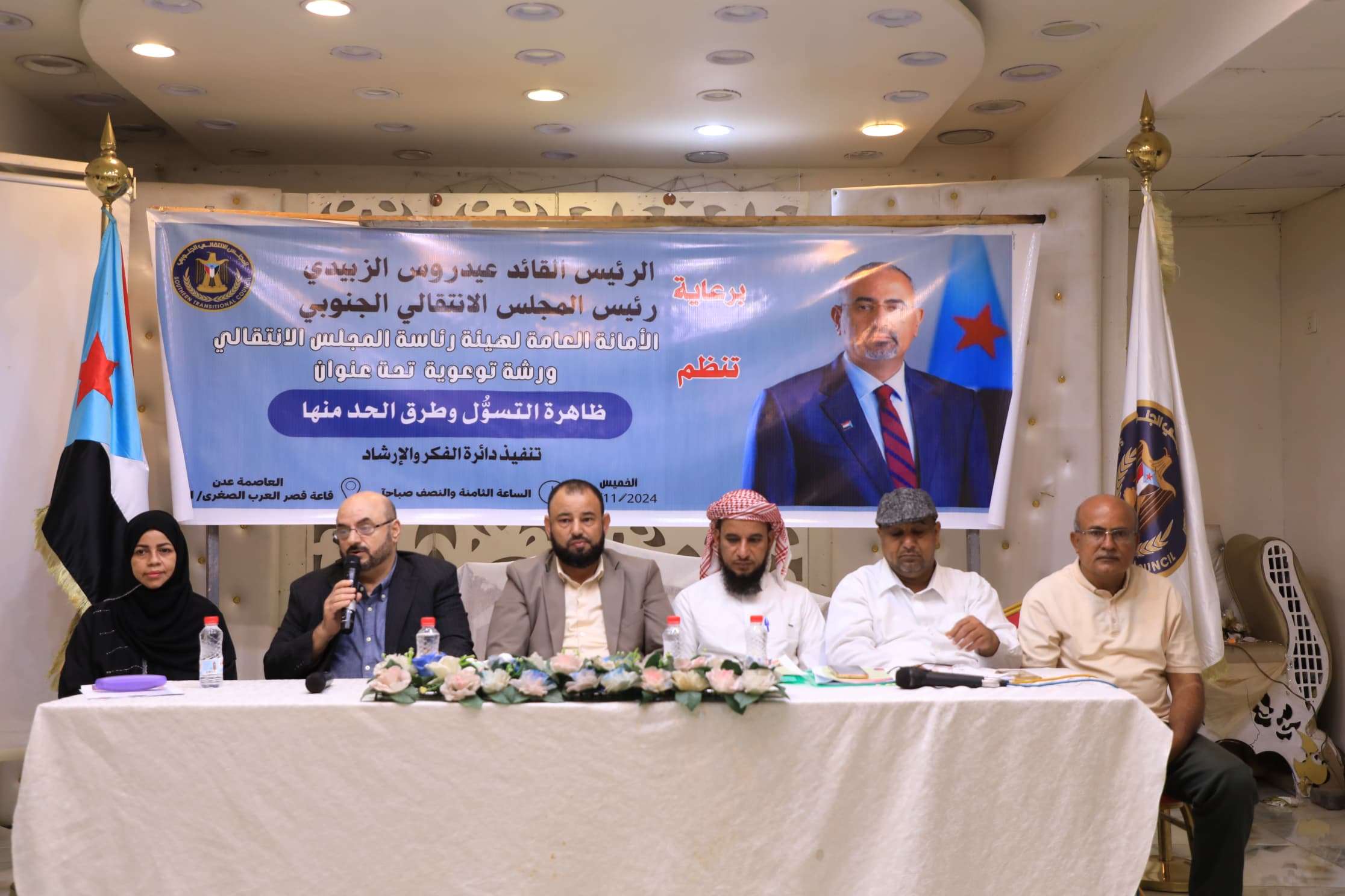 الأمانة العامة تنظم ورشة عمل بعنوان 'ظاهرة التسول وطرق الحد منها' نظمت دائرة الفكر والإرشاد في الأمانة العامة لهيئة رئاسة المجلس الانتقالي الجنوبي، اليوم الخميس, بالع...