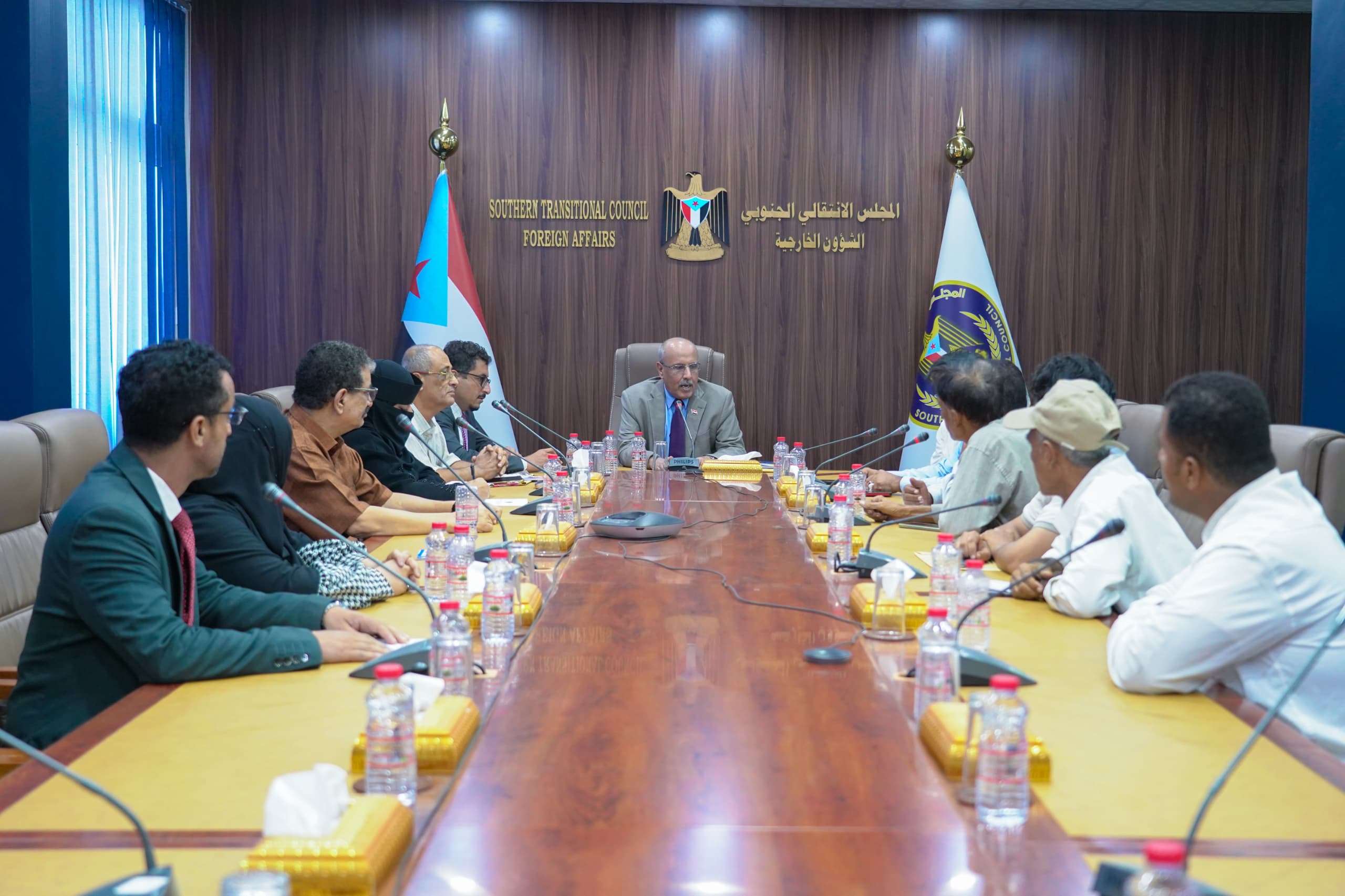 مساعد الأمين العام يلتقي الهيئة التنفيذية لانتقالي العاصمة عدن التقى مساعد الأمين العام للأمانة العامة لشؤون المحافظات والمنسقيات في المجلس الانتقالي الجنوبي، الأس...