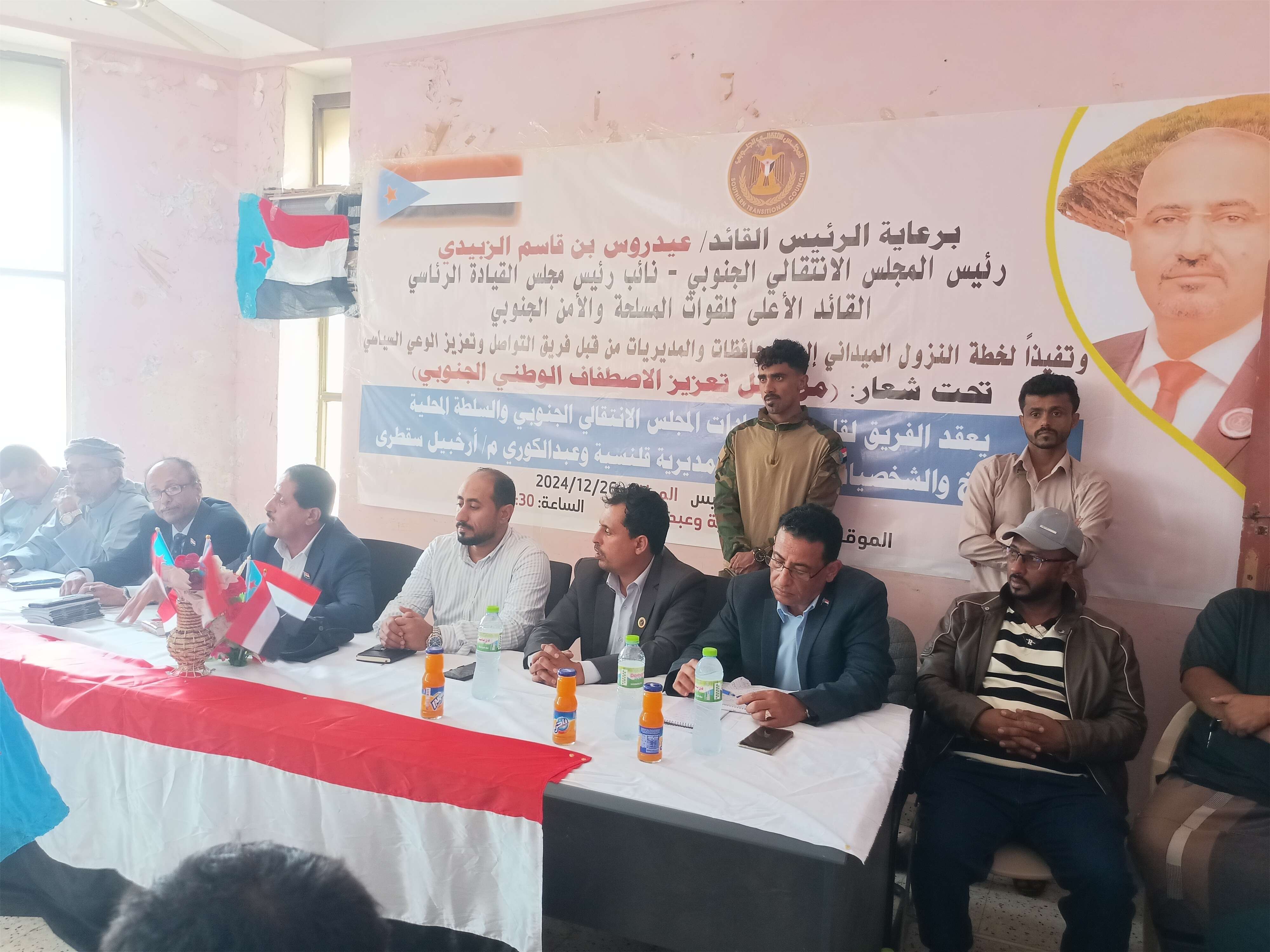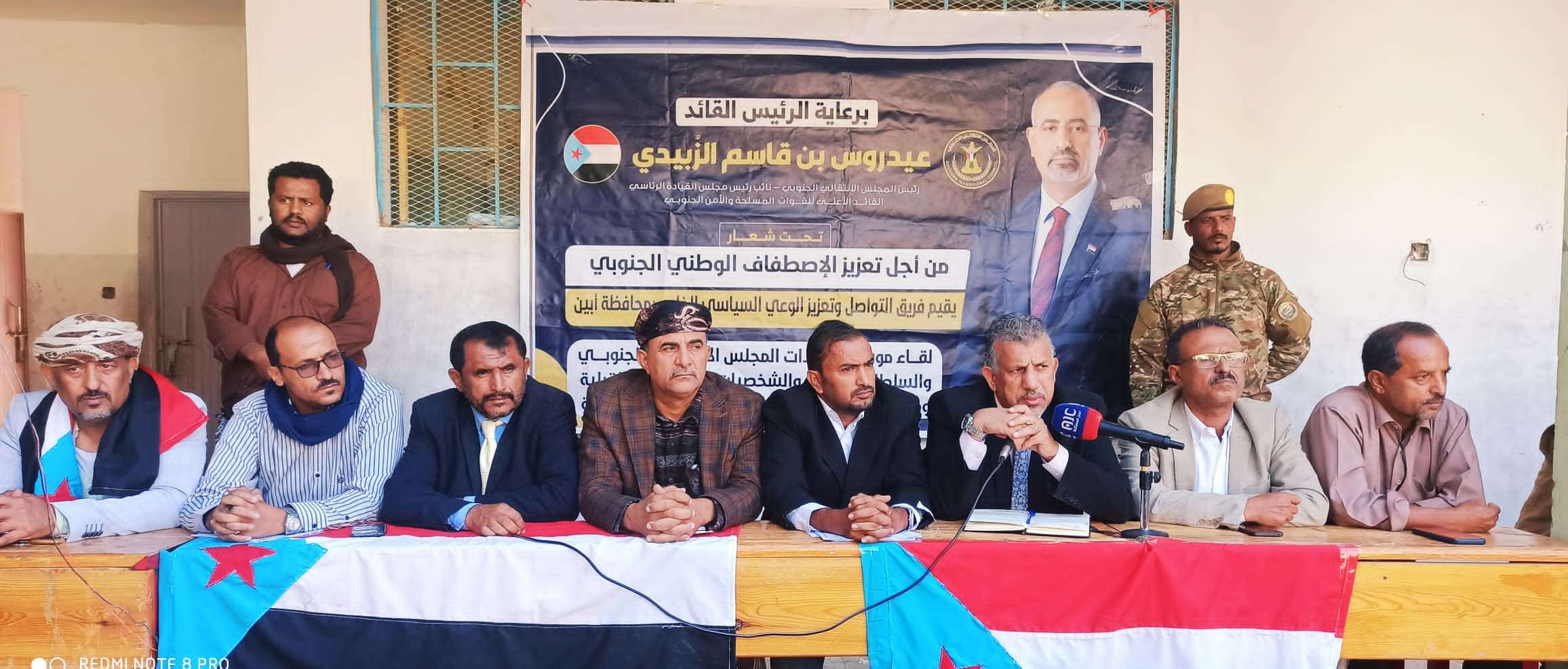 فريق التواصل يعقد لقاءً موسعًا مع قيادة المجلس والسلطة المحلية ووجهاء مديريتي نصاب وحطيب عقد فريق التواصل وتعزيز الوعي السياسي بالمجلس الانتقالي الجنوبي، برئاسة عضو هيئة الرئاسة الشيخ عبدال...