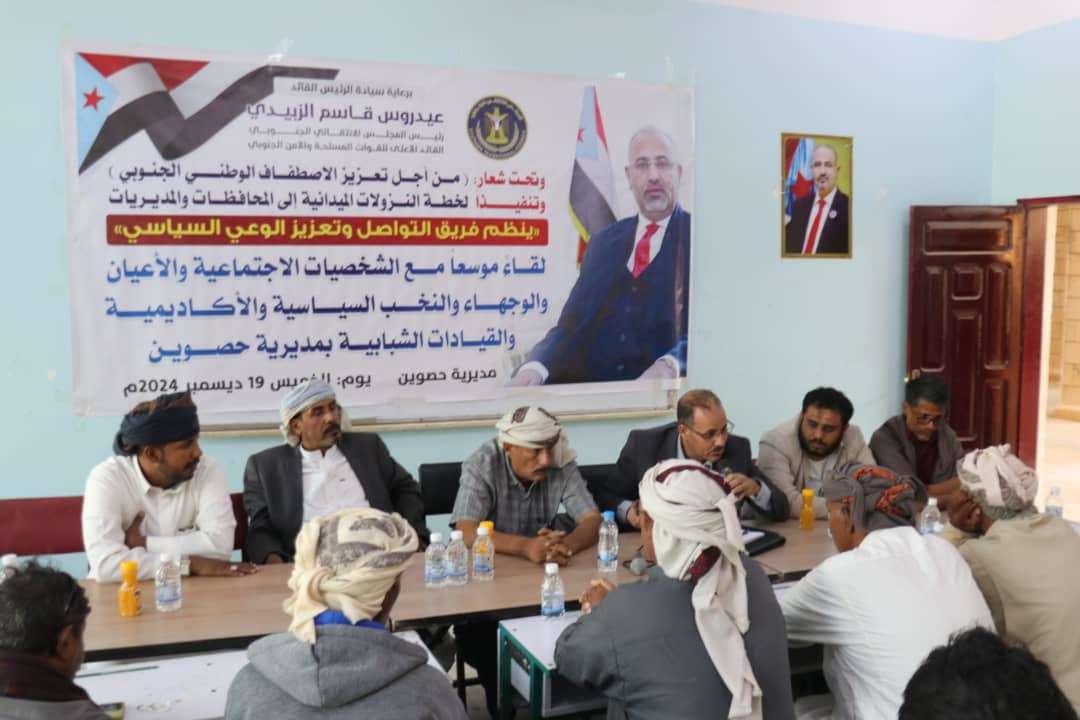 فريق التواصل وتعزيز الوعي السياسي بالمجلس يعقد لقاءً موسعًا في مديرية حصوين عقد فريق التواصل وتعزيز الوعي السياسي في المجلس الانتقالي الجنوبي، برئاسة عضو هيئة الرئاسة، الدكتور...