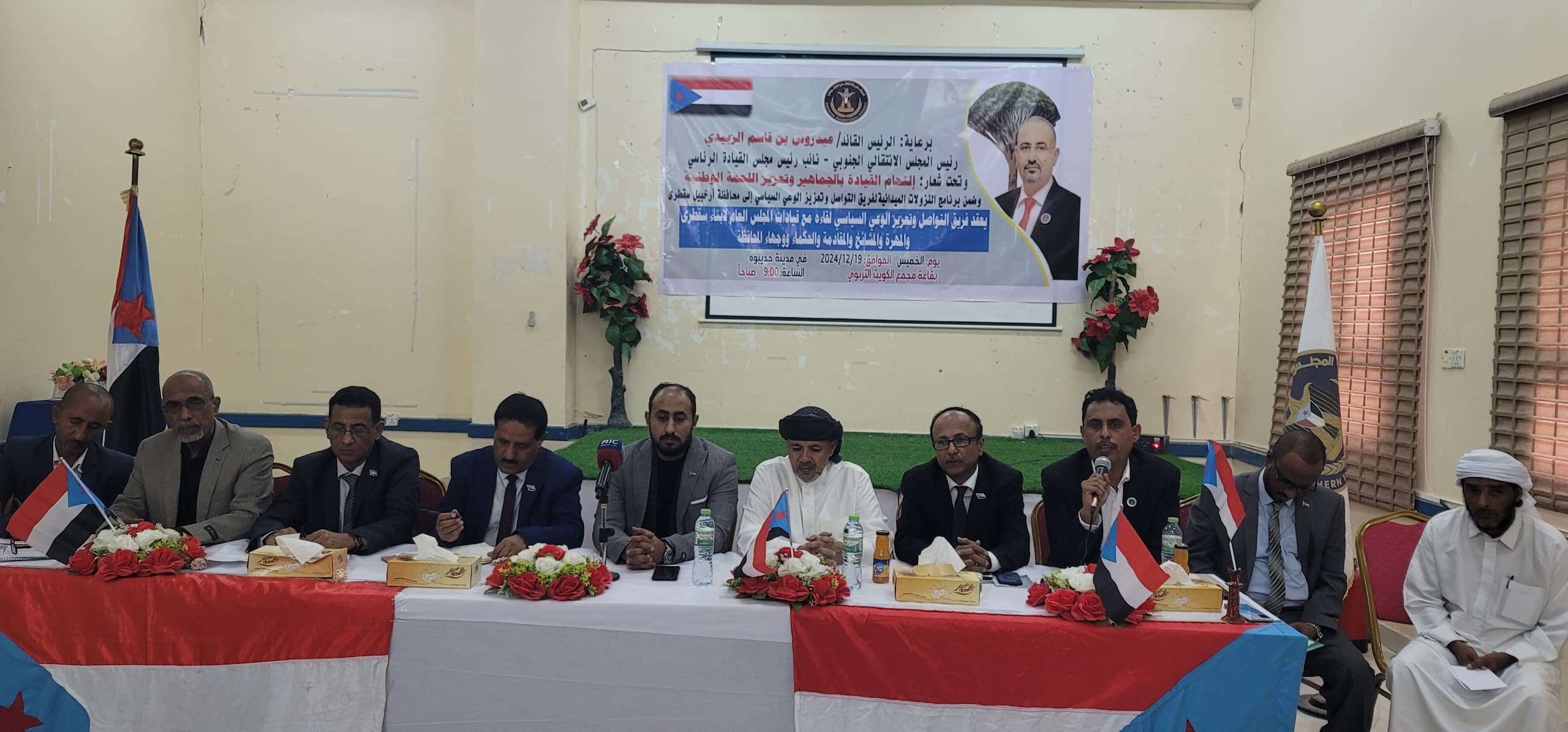 فريق التواصل وتعزير الوعي السياسي بالمجلس يعقد لقاءً موسعًا في محافظة سقطرى عقد فريق التواصل وتعزيز الوعي السياسي في المجلس الانتقالي الجنوبي، برئاسة عضو هيئة الرئاسة، الشيخ عب...