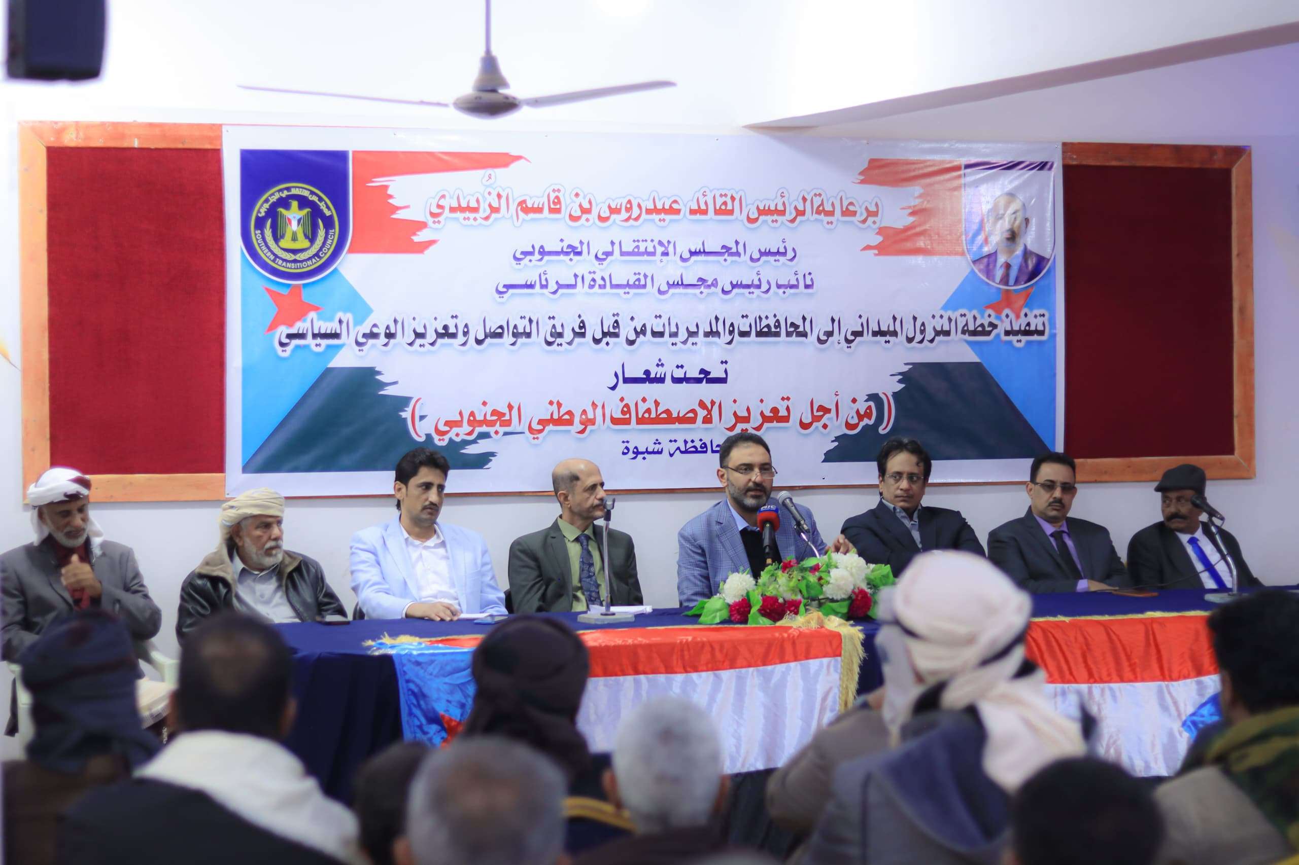 فريق التواصل وتعزيز الوعي السياسي ينظم لقاءً بأعضاء القيادة المحلية بمديرية عتق ومجلس العموم والقطاع النسوي والشبابي بشبوة نظم فريق التواصل وتعزيز الوعي السياسي في المجلس الانتقالي الجنوبي برئاسة عضو هيئة الرئاسة الشيخ عبدا...