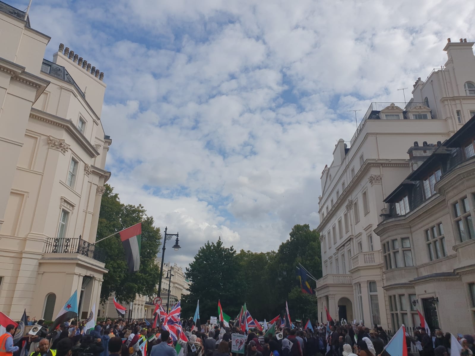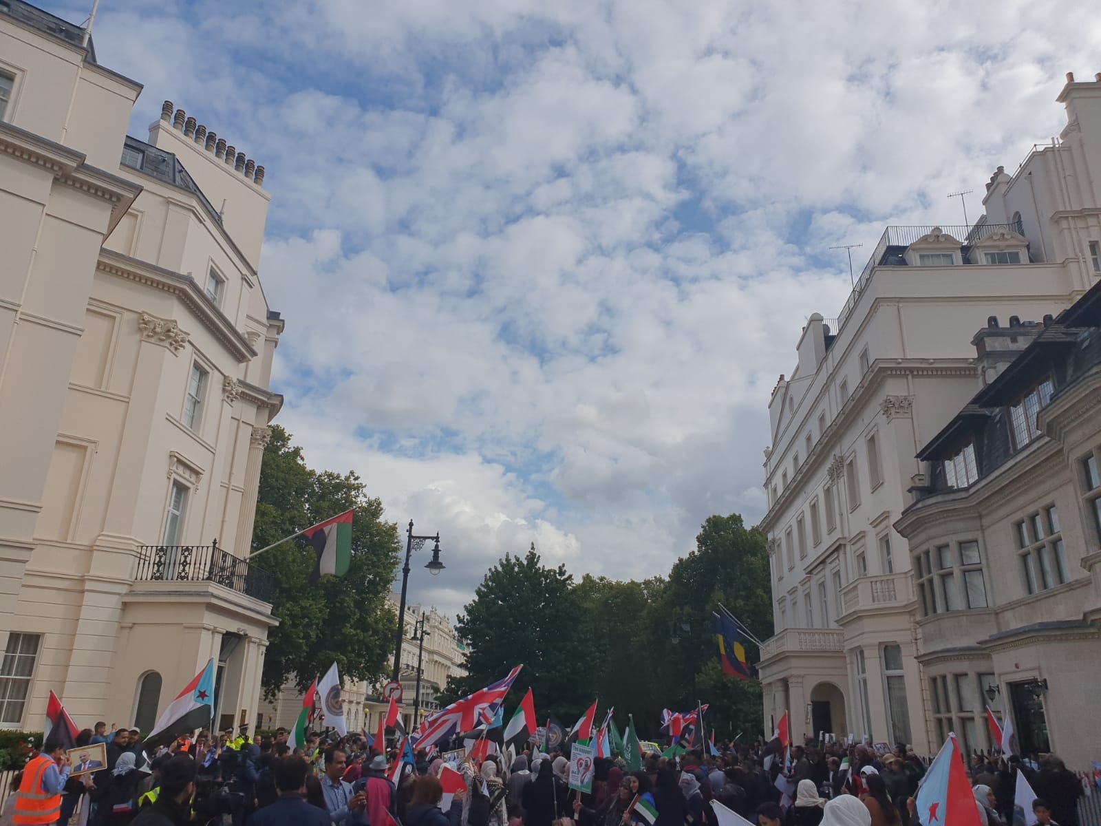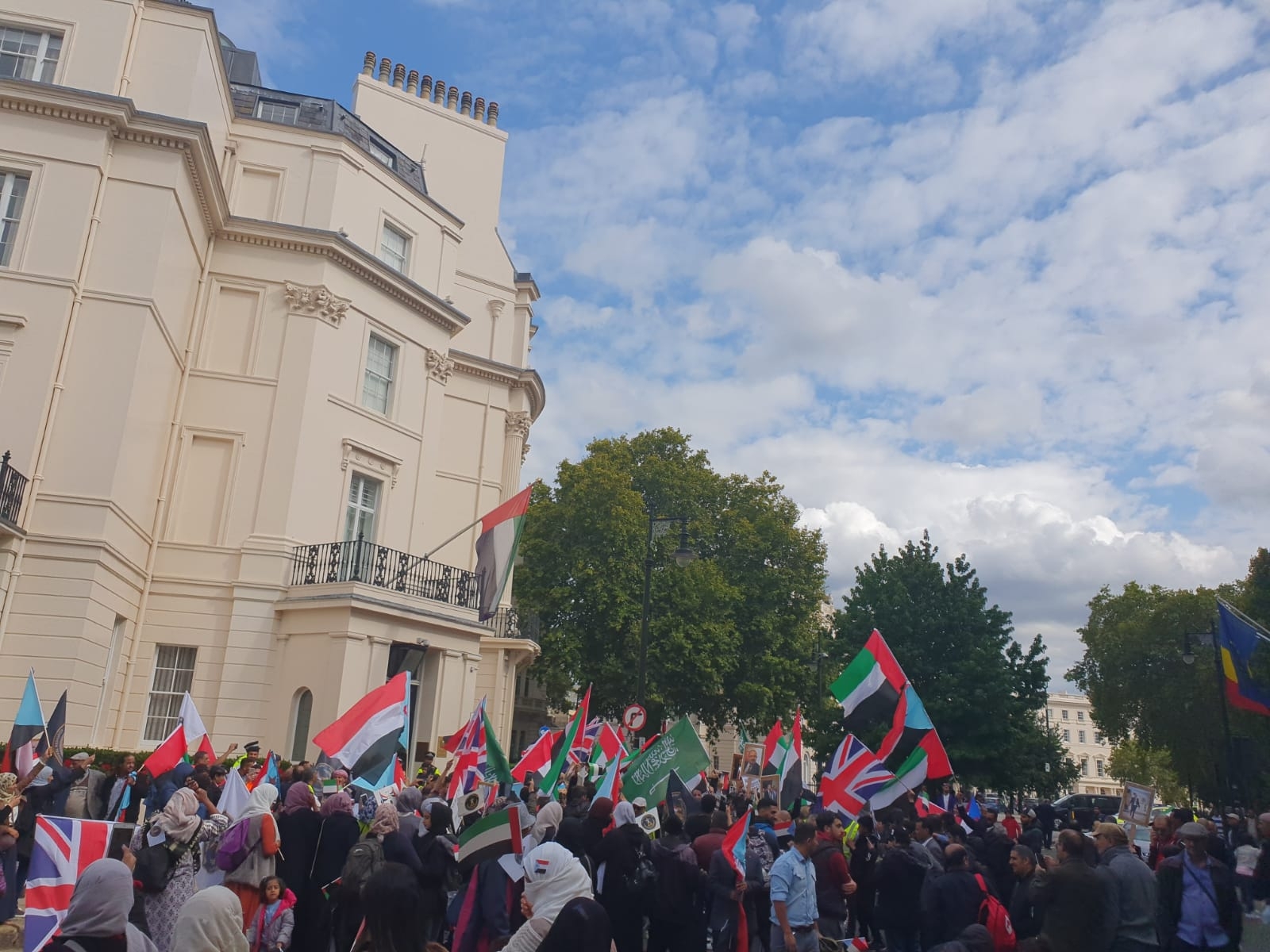 احتشد المئات من أبناء الجالية الجنوبية، رجالاً ونساءً وأطفال، ومن مختلف المدن والمقاطعات البريطانية، في تظاهرة حاشدة أمام مبنى السفارة الإماراتية في العاصمة البريطانية لندن ظهر يوم السبت ٧ سبتمبر ٢٠١٩م.