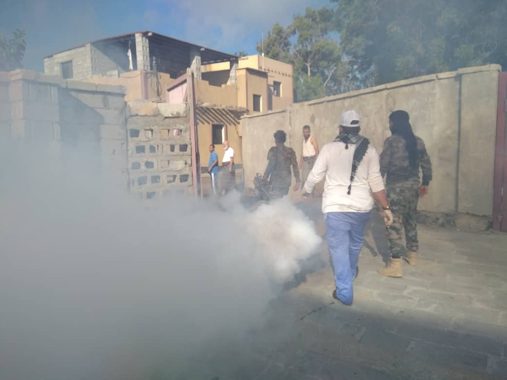 وأردف قائلا:" إن دور الرش الضبابي ورش المبيدات الحشرية والقضاء عليها من قبل فريق شباب عدن الطوعي ومكتب الصحة والسكان بالمديرية والمدعومة من قبل جمعية القعيطي ومؤسسة يافع للعمل والإنجاز، يأتي كعمل اسعافي لإنقاذ المديرية والتخفيف عنها وعن مصابها بفقدان العديد من أبنائها خلال الأسبوعين الماضيين بسبب انتشار الأمراض والحميات القاتلة".