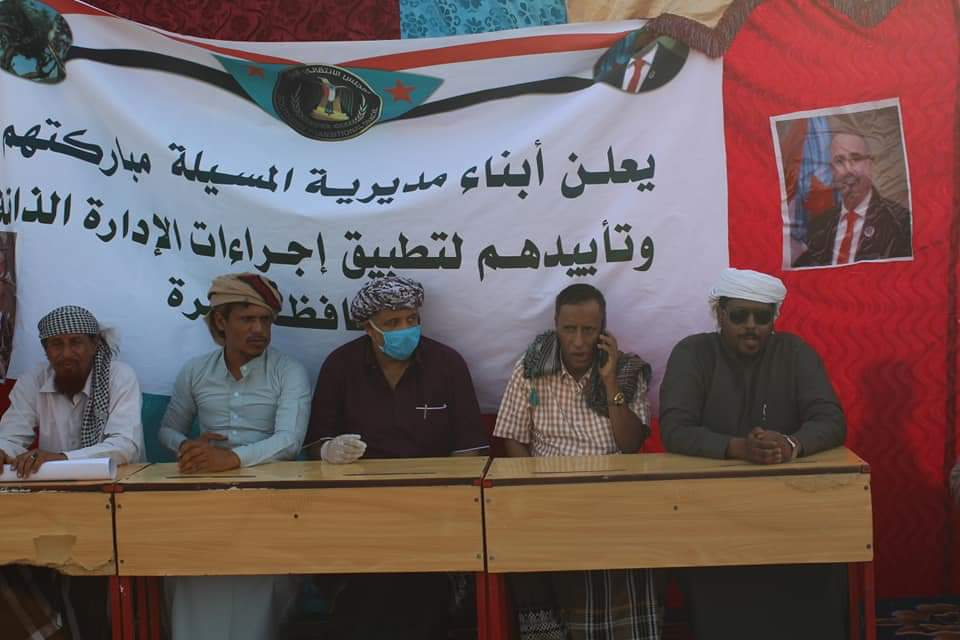 في الفعالية الجماهيرية أعلن أبناء مديرية المسيلة تأييدهم ومباركتهم للانتصارات التي حققتها القوات المسلحة الجنوبية في جزيرة سقطرى وتحريرها من الجماعات الإرهابية التابعة لجماعة الإخوان المدعومة من قطر وتركيا والتي سعت جاهدة بكل طرقها ووسائلها وأدواتها على زعزعة الأمن والاستقرار في الأرخبيل طيلة الفترات الماضية.