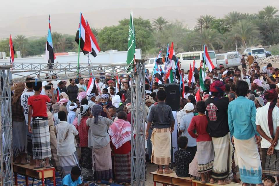 هذا وقد رددت الجماهير الهتافات الثورية الجنوبية الحماسية، ورفع المشاركون إعلام دولة الجنوب ودول التحالف العربي، كما شهدت الفعالية مهرجانا خطابي ألقيت فيه عددا من الكلمات الخطابية لقيادات في المحافظة والمديرية.