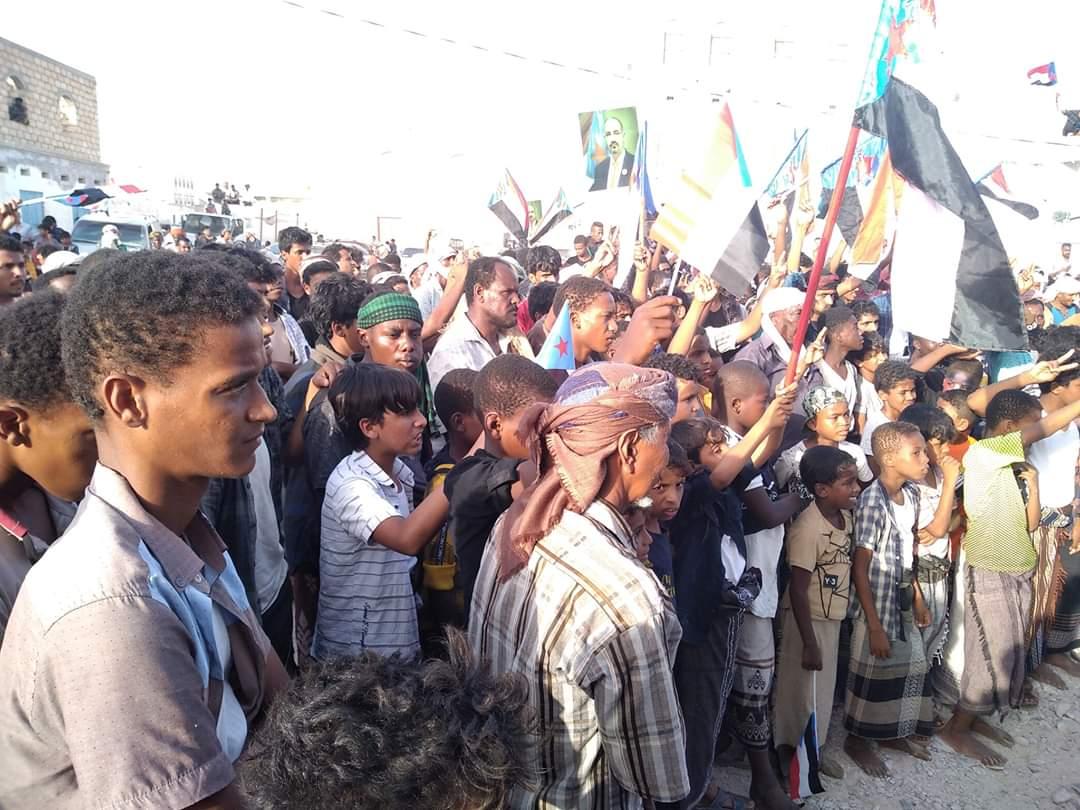 هذا وقد رفعت الجماهير أعلام دولة الجنوب وصور الرئيس القائد عيدروس قاسم الزُبيدي، وصور الشهداء، مرددة الهتافات الثورية الجنوبية الحماسية المطالبة بسرعة تطبيق الإدارة الذاتية في المحافظة.