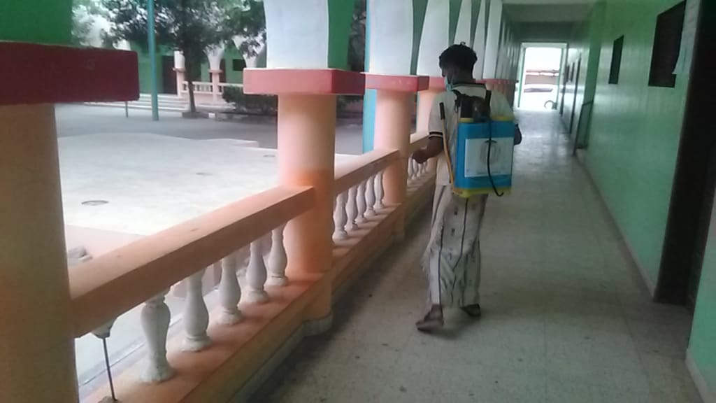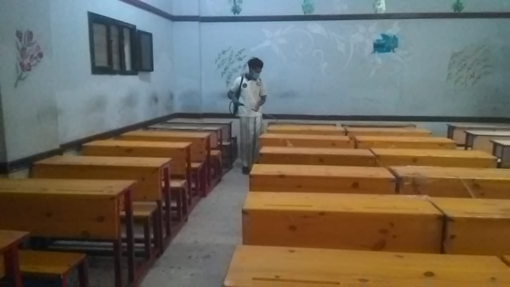 وقام فريق الرش والتعقيم برئاسة سالم الحدادي رئيس لجنة الخدمات بلجنة الطوارئ بانتقالي الشحر بتعقيم الصفوف و المكاتب والممرات كافة، كما تخلل عملية التعقيم الرش الضبابي للحد من تكاثر البعوض الناقل للكثير من الحميات المنتشرة .