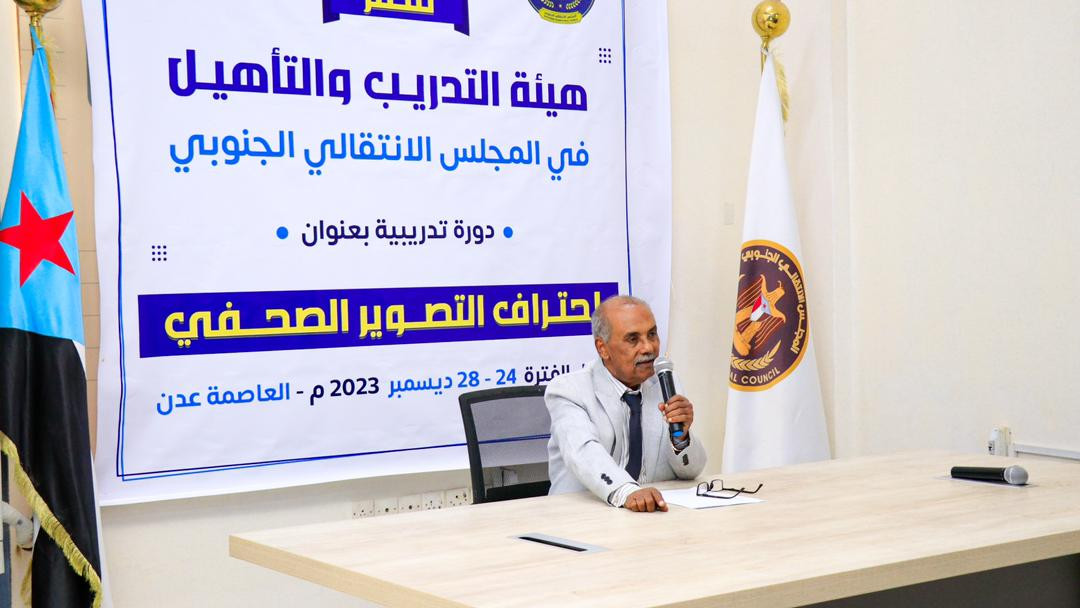دشنت هيئة التدريب والتأهيل المساعدة لهيئة رئاسة المجلس الانتقالي الجنوبي، اليوم الاحد، بالعاصمة عدن، دورة تدريبية بعنوان "احتراف التصوير الصحفي".