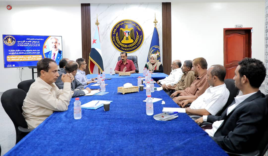 نظمت الدائرة السياسية في الأمانة العامة لهيئة رئاسة المجلس الانتقالي الجنوبي، اليوم الأحد في العاصمة عدن، لقاءً تشاورياً للإدارات السياسية في الهيئات المحلية للمجلس الانتقالي في المحافظات.