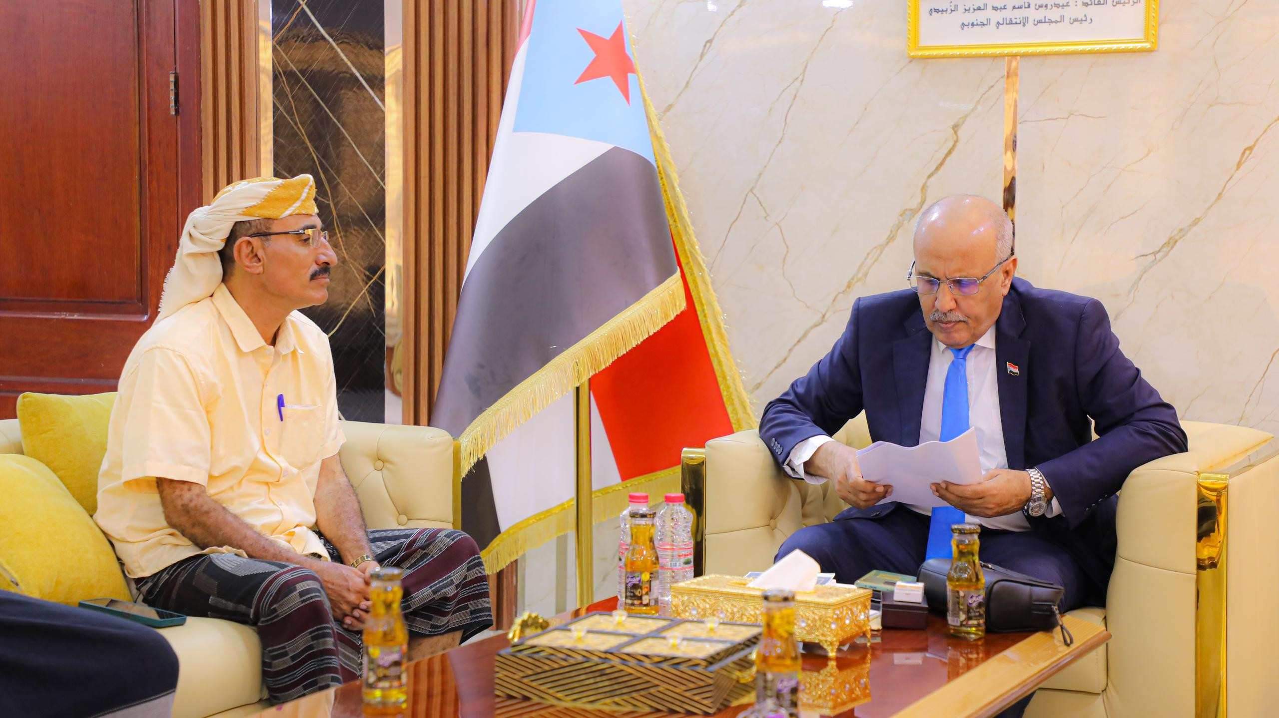 حضر اللقاء، رمزي الشعيبي، رئيس اللجنة السياسية بالجمعية الوطنية، ولطفي صالح، عضو القيادة المحلية للمجلس الانتقالي بمحافظة لحج.