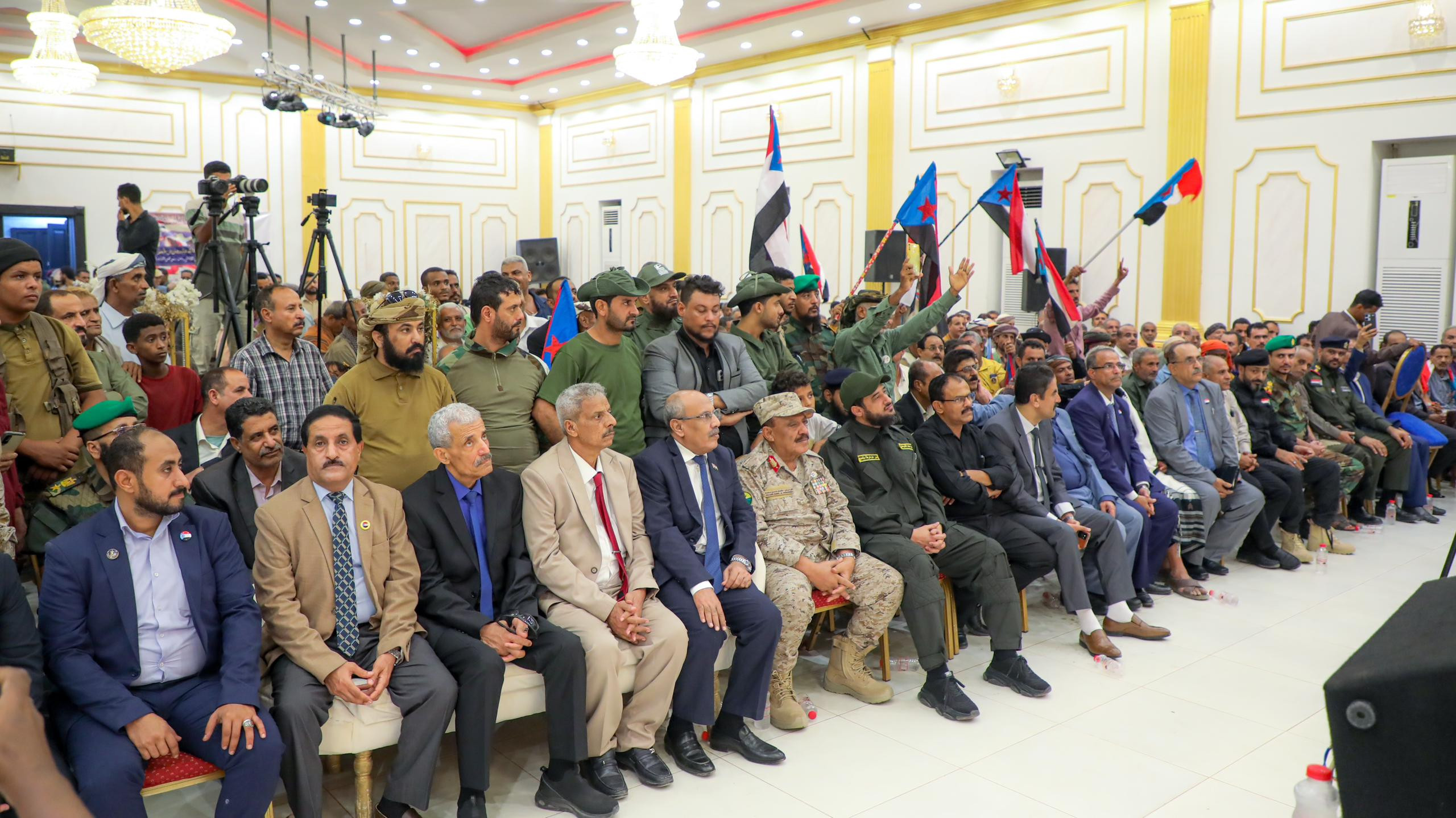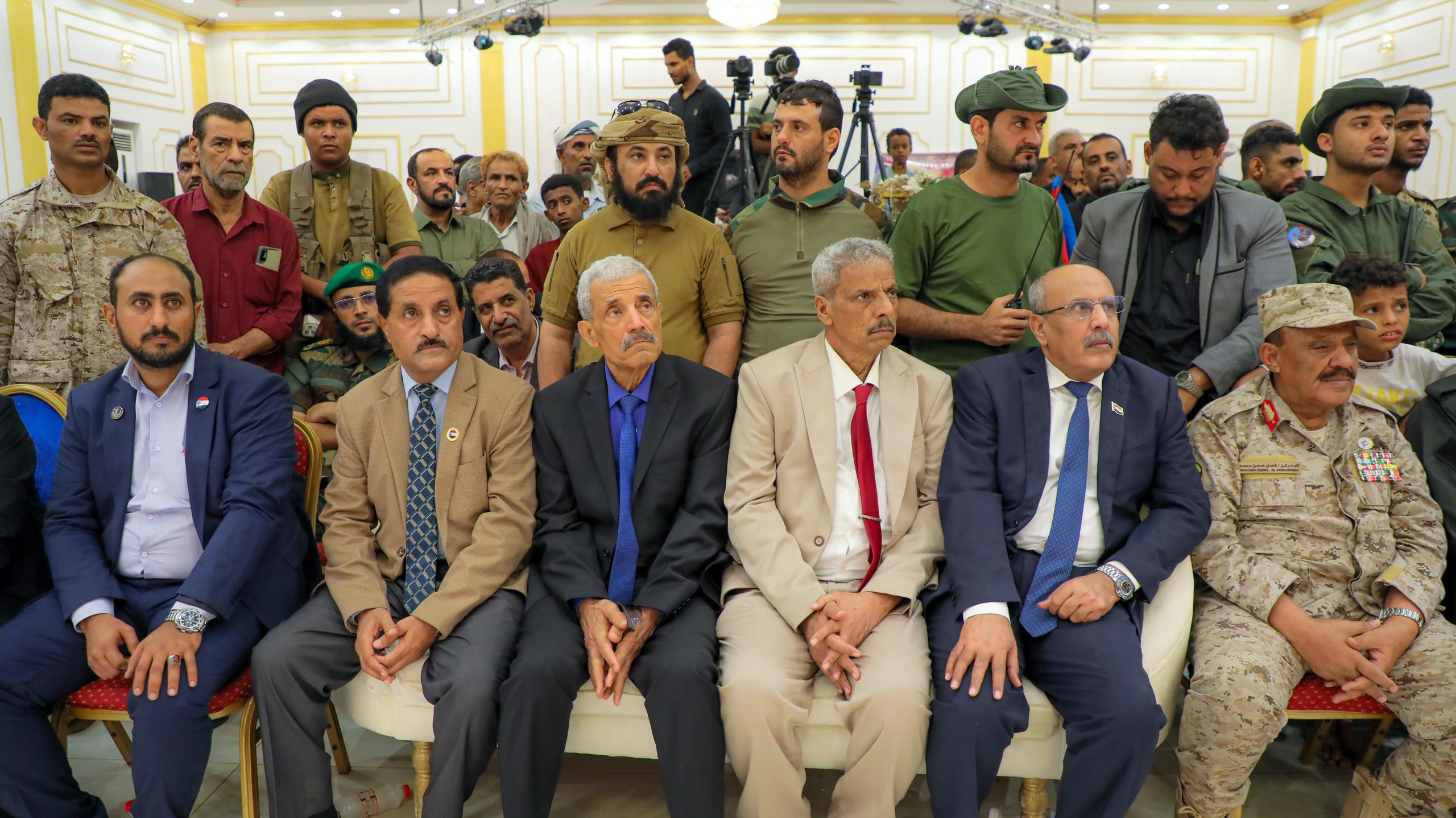 وفي الحفل الذي حضره اللواء الركن هيثم قاسم، عضو هيئة رئاسة المجلس الانتقالي الجنوبي رئيس اللجنة العسكرية والأمنية العليا، وعلي أحمد الجبواني، والشيخ عبدالرحمن شاهر، عضوا هيئة رئاسة المجلس، واللواء الركن فضل حسن، قائد المنطقة العسكرية الرابعة، واللواء الركن أحمد التركي، محافظ محافظة لحج، ووزراء في حكومة المناصفة، والمهندس نزار هيثم، رئيس الهيئة الشبابية المساعدة لهيئة الرئاسة، ومحمد الشقي، مساعد الأمين العام للأمانة العامة لهيئة رئاسة المجلس، وعدد من قيادات المجلس الانتقالي والقيادات العسكرية والأمنية، ألقى الأستاذ علي الكثيري كلمة نقل فيها في مستهلها للحاضرين تحايا الرئيس القائد عيدروس الزُبيدي، رئيس المجلس الانتقالي الجنوبي، القائد الأعلى للقوات المسلحة الجنوبية.