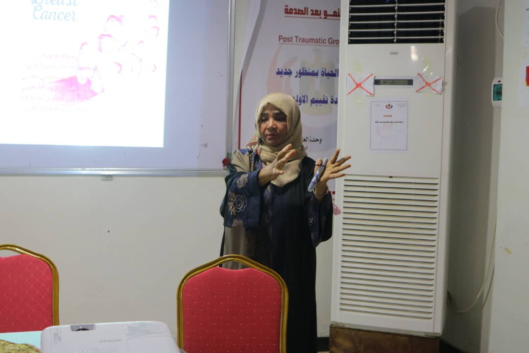 هذا وتضمن اليوم الختامي لبرنامج الدعم النفسي، عددا من الإرشادات النفسية، والفقرات التعريفية عن أهداف تحسين جودة حياة الناجيات من سرطان الثدي، وعددا من التدريبات التي توزعت خلالها المشاركات إلى مجموعات، والتي كانت في سياق مزايا العلاج الجماعي،ومراحل التعافي،والخدمات النفسية للحالة، وتم خلالها التقييم البعدي لآثار مابعد الصدمة، حيث جرى في الختام توزيع الهدايا الرمزية لجميع الناجيات.