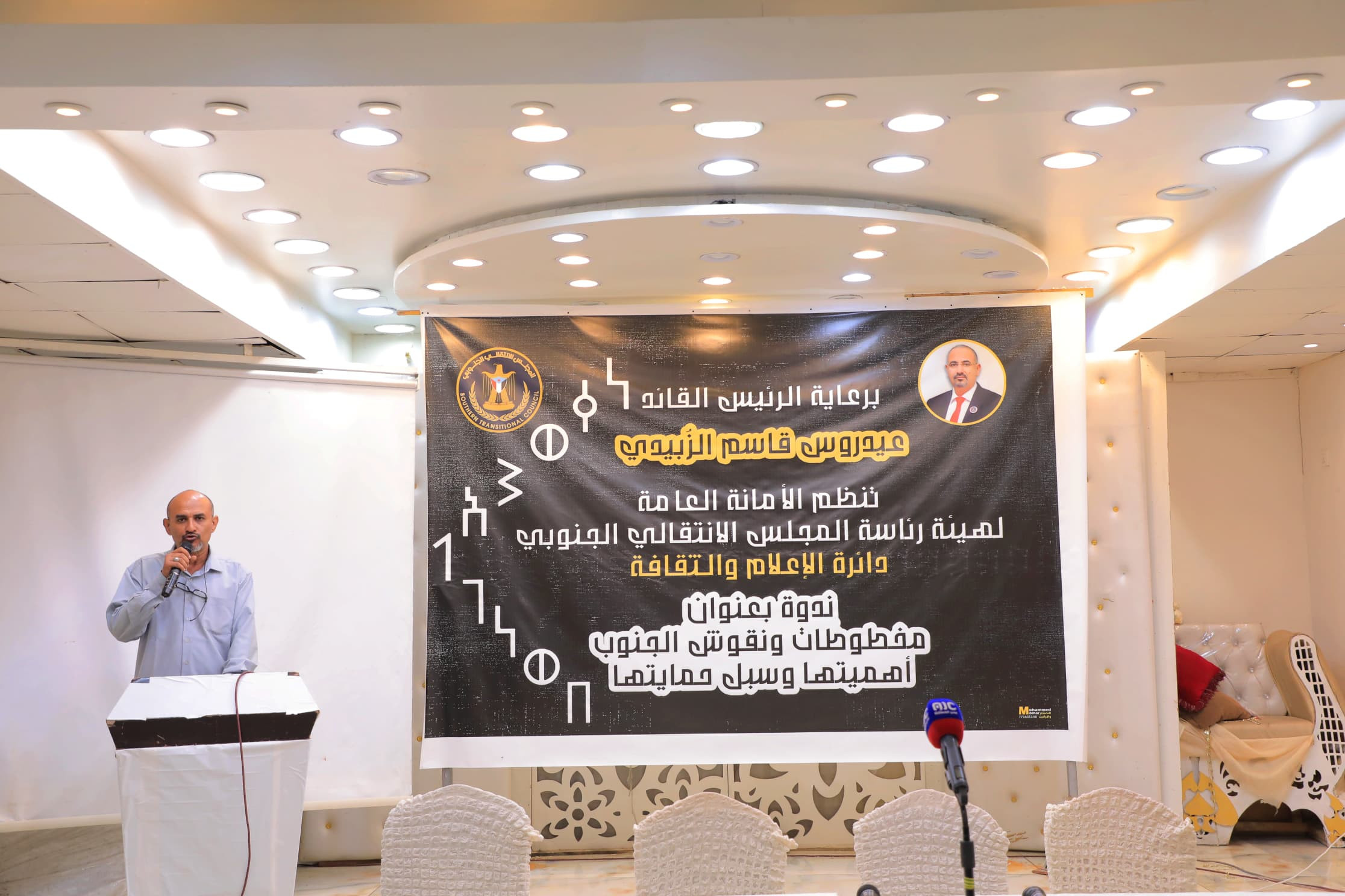 نظمت دائرة الإعلام والثقافة في الأمانة العامة لهيئة رئاسة المجلس الانتقالي الجنوبي، اليوم الثلاثاء في العاصمة عدن، ندوة ثقافية تحت عنوان "المخطوطات الأثرية في الجنوب: أهميتها وحمايتها"، برعاية الرئيس القائد عيدروس الزبيدي رئيس المجلس الانتقالي الجنوبي.