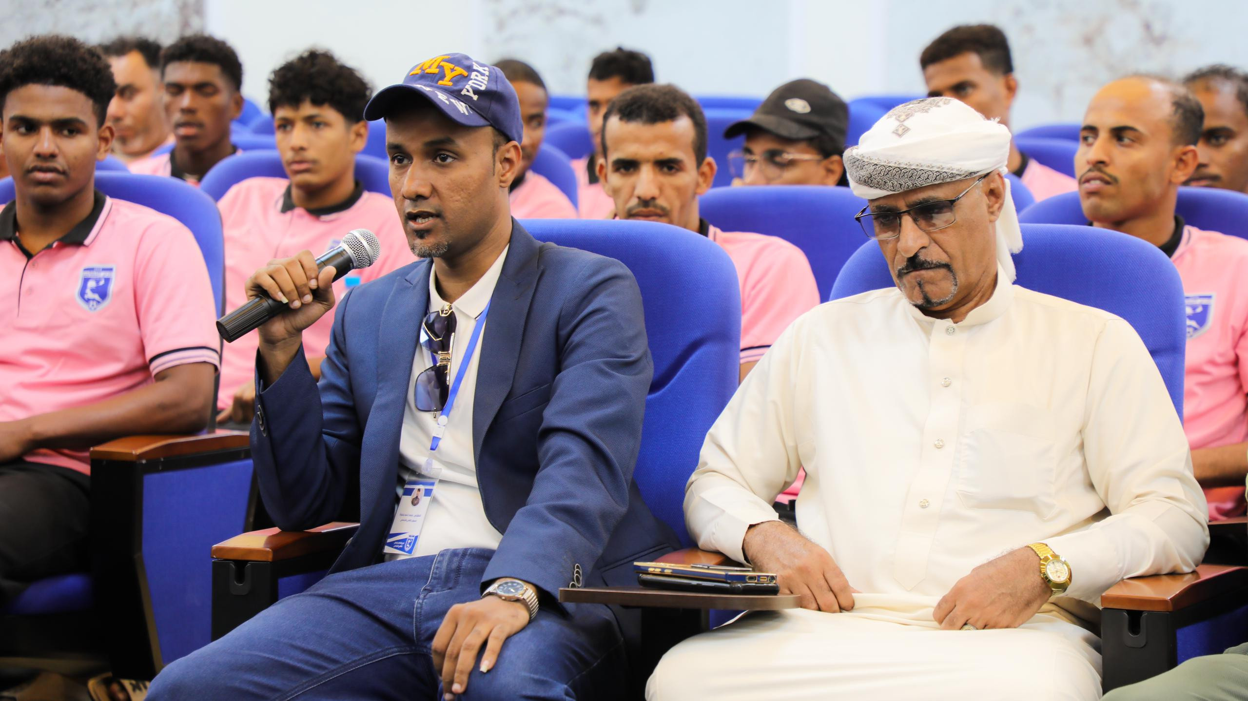 من جانبه نقل المسؤول الثقافي والاجتماعي للنادي المهندس محمد باحبارة، تحايا رئيس النادي فهمي بن شبراق، شاكراً القائم بأعمال رئيس المجلس، على حفاوة الاستقبال لجميع أعضاء البعثة الرياضية.