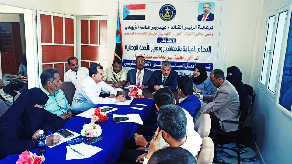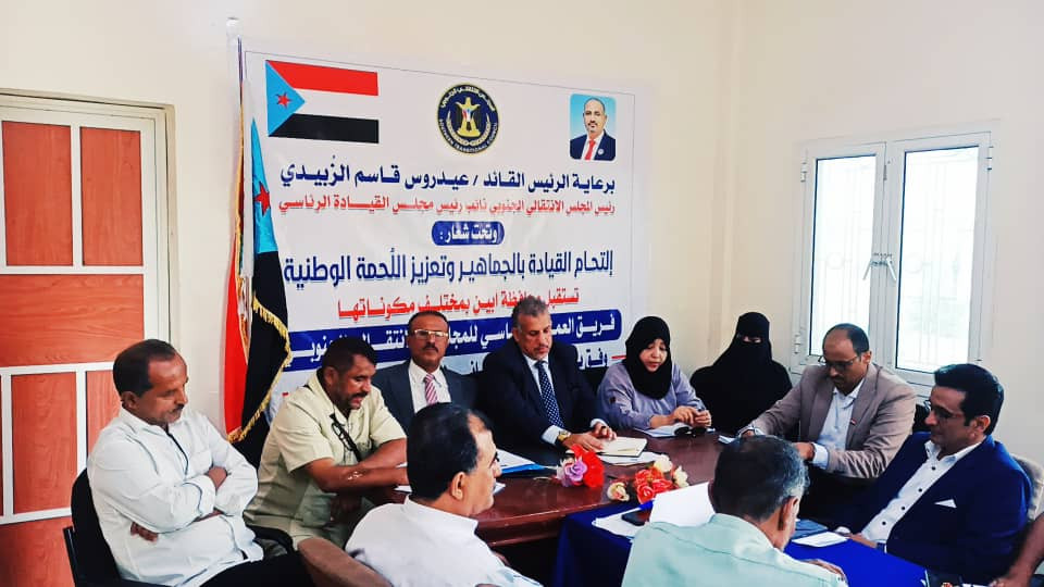 وتحت شعار "التحام القيادة السياسية بالجماهير وتعزيز اللحمة الوطنية"، عقد الفريق لقاءً مع الهيئة التنفيذية للقيادة المحلية للمجلس الانتقالي الجنوبي بمحافظة أبين.
