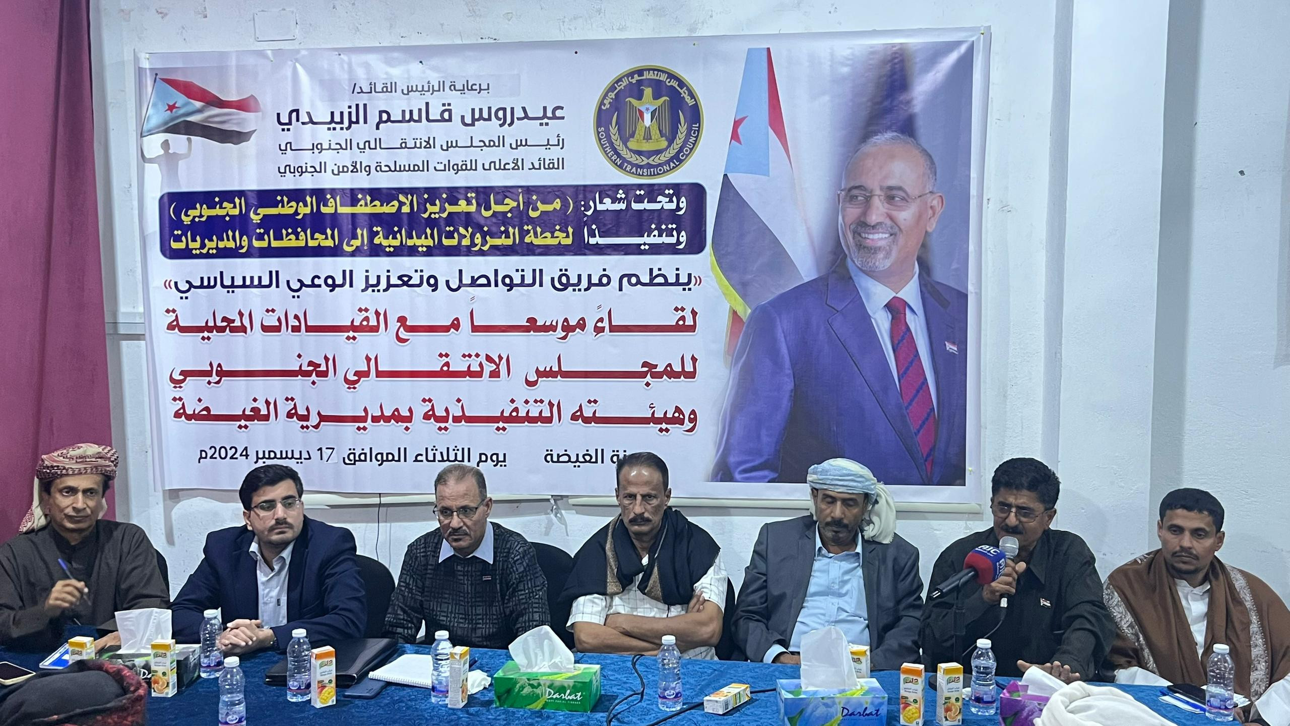 عقد فريق التواصل وتعزيز الوعي السياسي بالمجلس الانتقالي الجنوبي، برئاسة عضو هيئة الرئاسة، الدكتور سالم علي القميري، اليوم الثلاثاء، لقاءً مع قيادة وأعضاء انتقالي مديرية الغيضة بمحافظة المهرة.