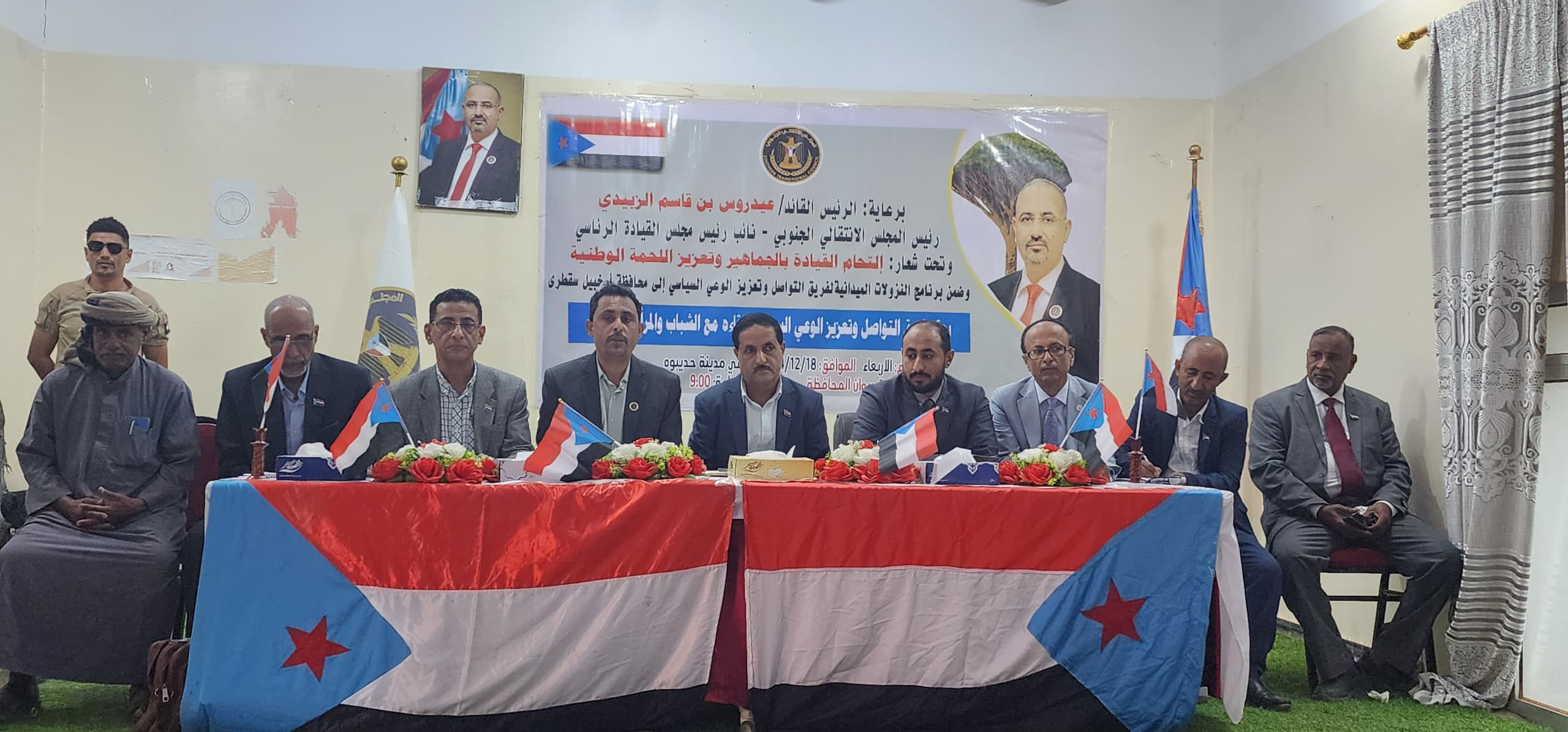 عقد فريق التواصل وتعزيز الوعي السياسي في المجلس الانتقالي الجنوبي، برئاسة عضو هيئة الرئاسة، عبدالرحمن جلال عبدالقوي، اليوم الأربعاء، لقاءً موسعًا مع ممثلي الشباب والمرأة في محافظة سقطرى.