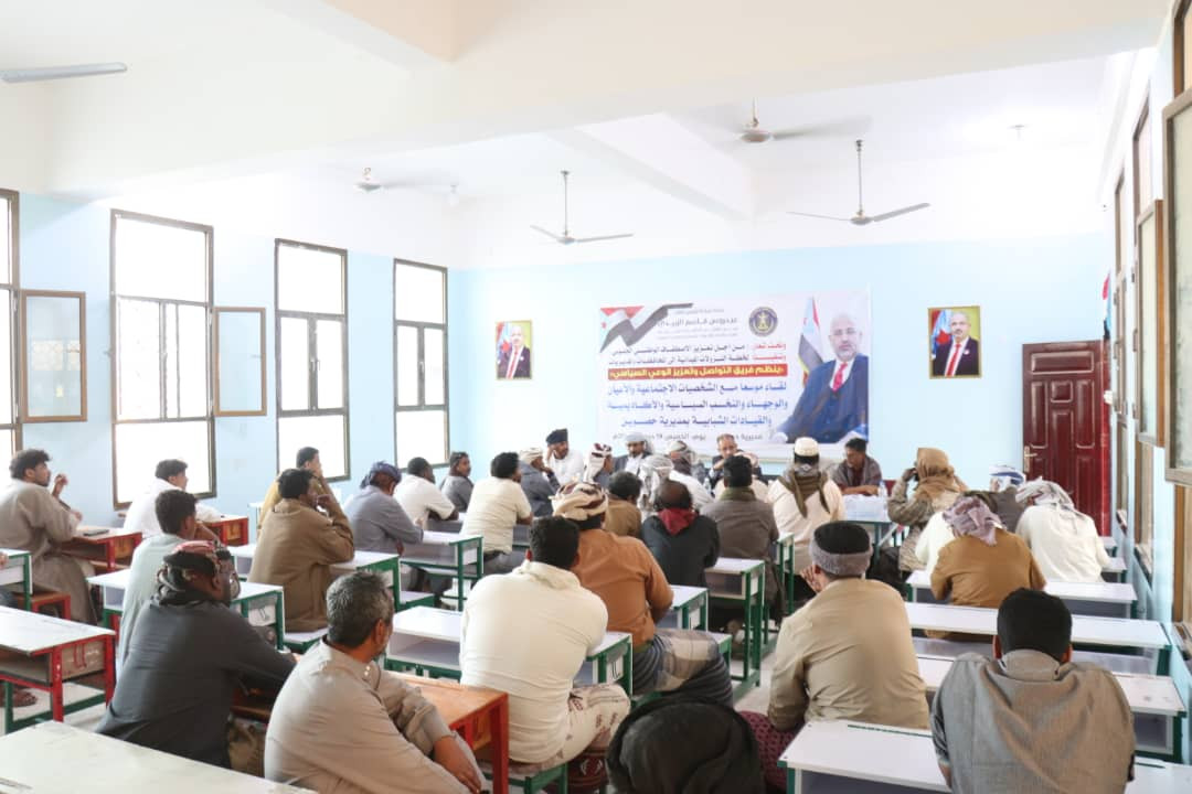 وناقش اللقاء، التحديات التي تواجه القضية الجنوبية، وأهمية دور المشائخ والأعيان والشباب في تعزيز الوعي المجتمعي والجهود المشتركة، والمشاركة الفاعلة في خدمة المجتمع، لتحقيق الأهداف الوطنية والتنمية والاستقرار في المديرية والمحافظة.