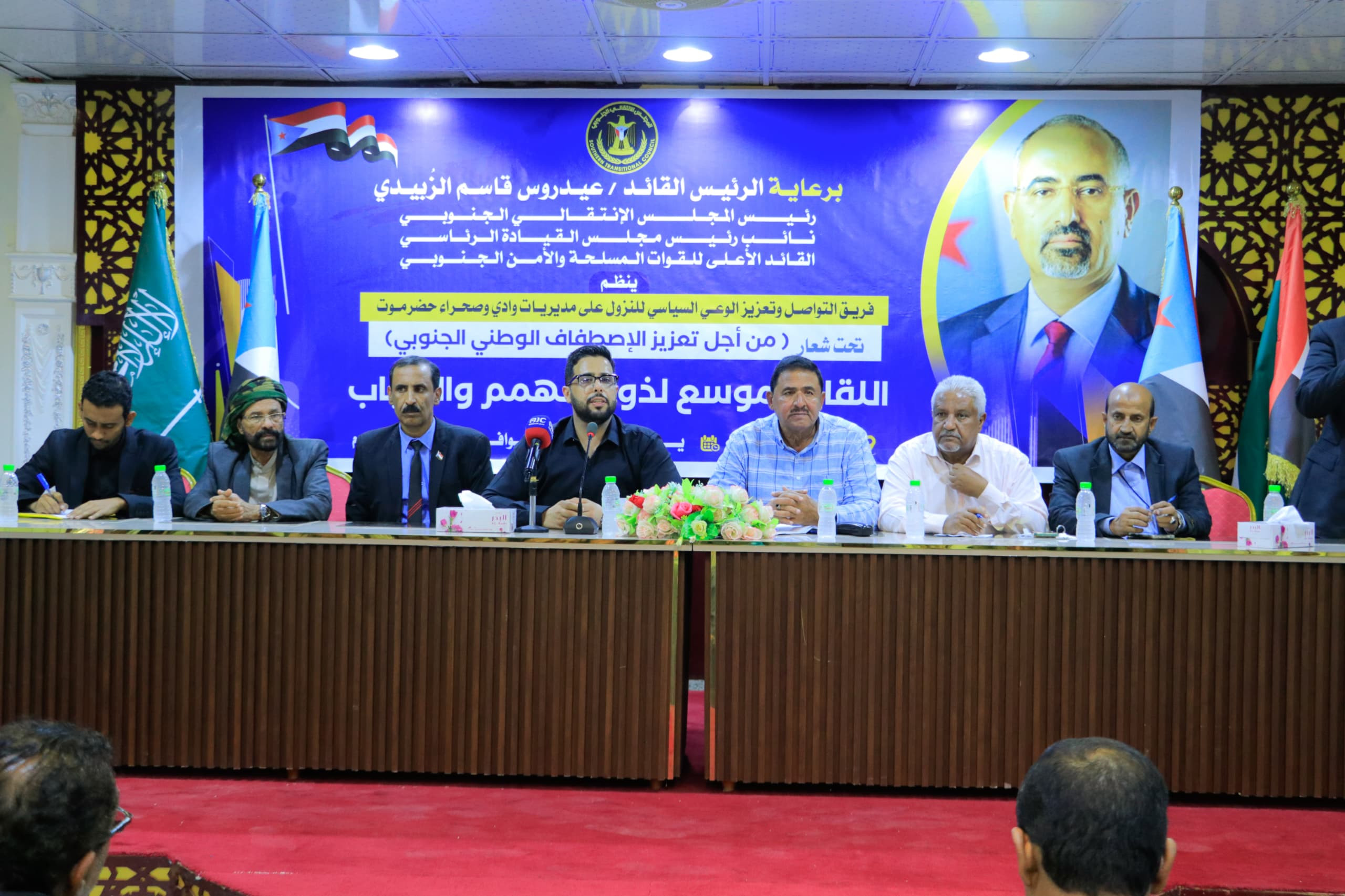 عقد فريق التواصل وتعزيز الوعي السياسي في المجلس الانتقالي الجنوبي، برئاسة عضو هيئة الرئاسة، عبدالرؤوف حسن السقاف، اليوم الاثنين، لقاءً موسعًا مع ذوي الهمم والشباب، في وادي وصحراء حضرموت.