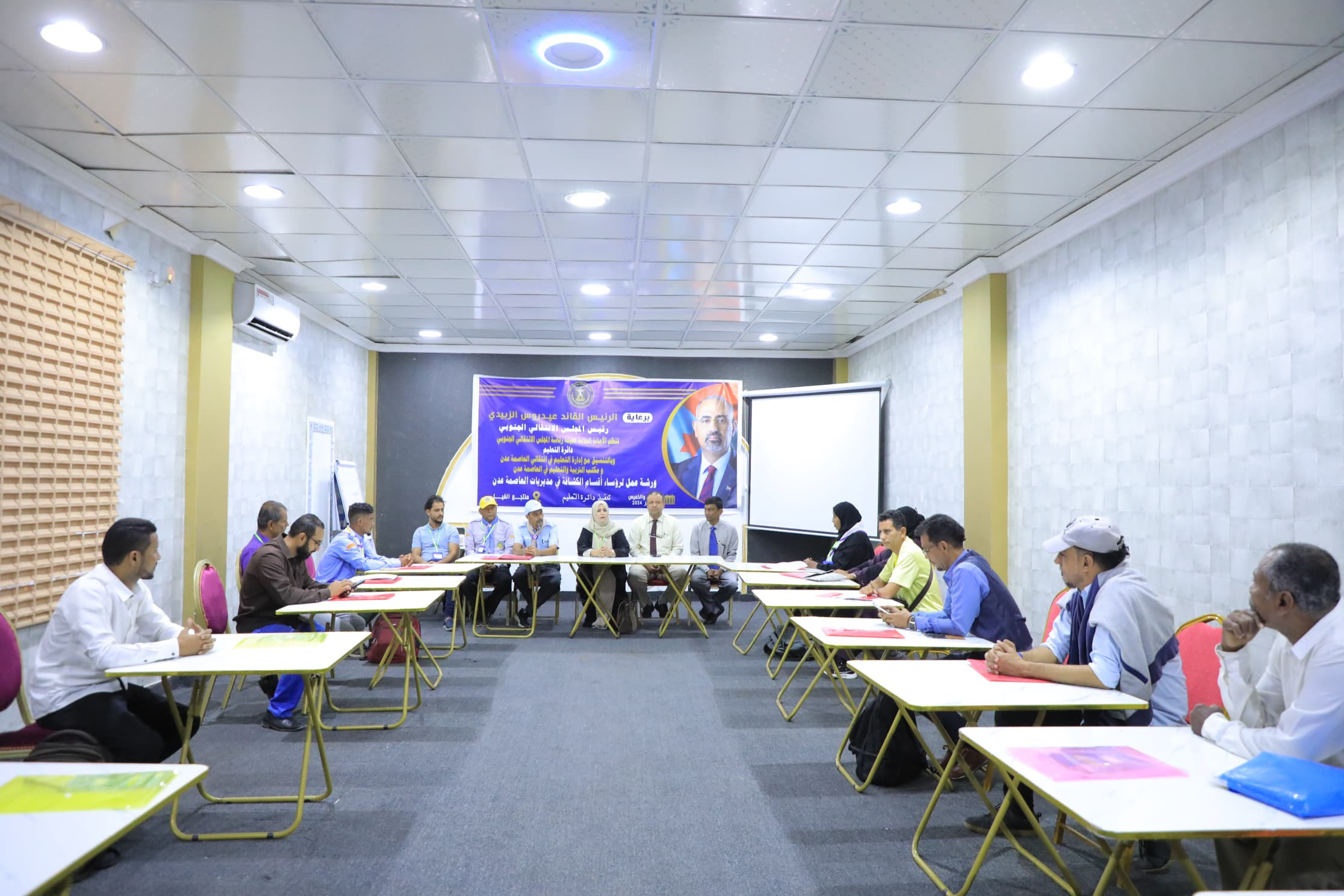 دشنت دائرة التعليم في الأمانة العامة لهيئة رئاسة المجلس الانتقالي الجنوبي، اليوم الأربعاء، ورشة عمل لرؤساء أقسام الكشافة في مكاتب التربية والتعليم بمديريات العاصمة عدن، وذلك برعاية الرئيس القائد عيدروس الزبيدي، رئيس المجلس الانتقالي الجنوبي.