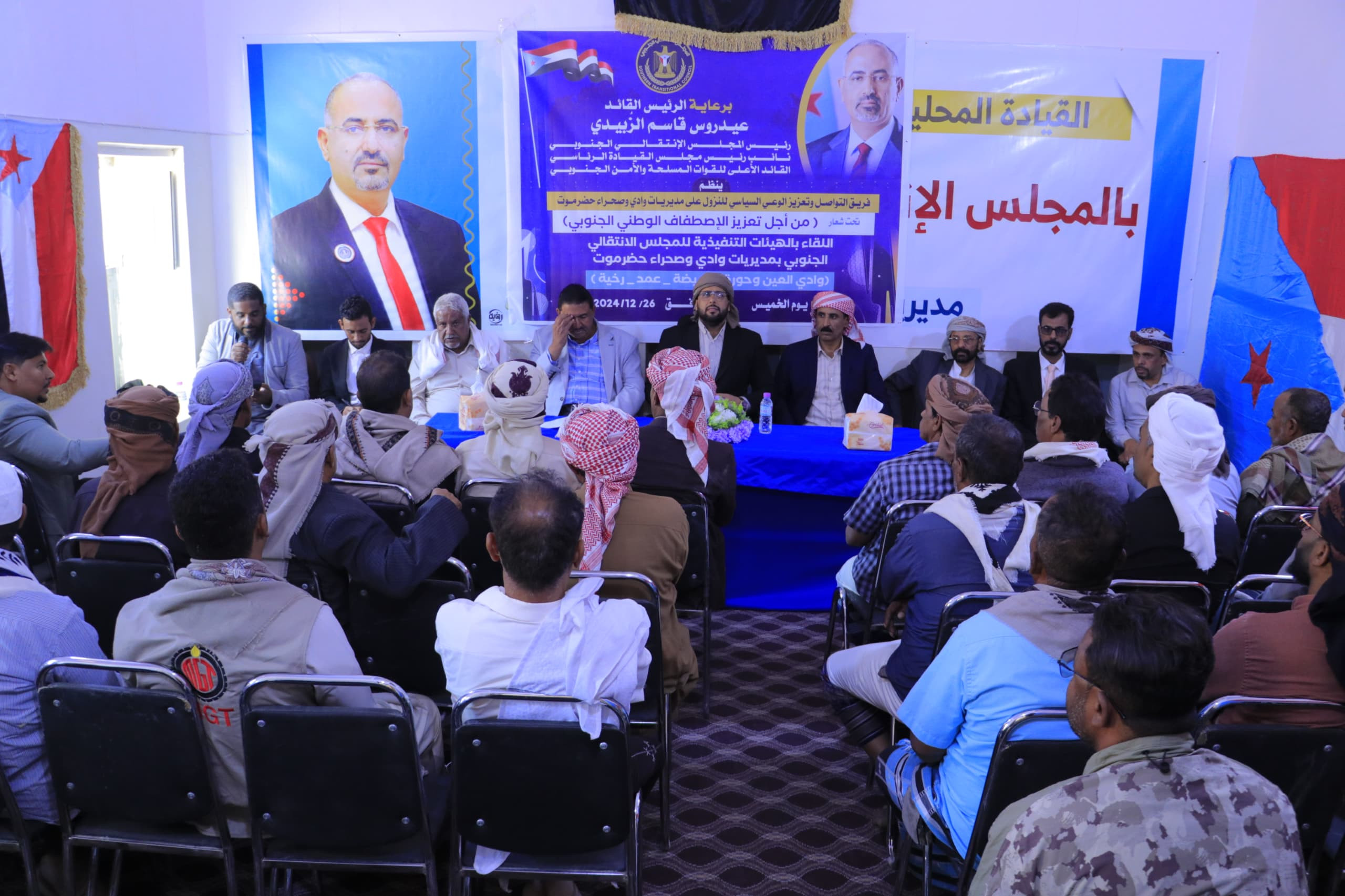 عقد فريق التواصل وتعزيز الوعي السياسي بالمجلس الانتقالي الجنوبي، برئاسة عضو هيئة الرئاسة عبدالرؤوف السقاف، اليوم الخميس، اجتماعًا بالهيئات التنفيذية للقيادات المحلية للمجلس الانتقالي في مديريات وادي عمد، رخية، حريضه، وادي العين وحورة.