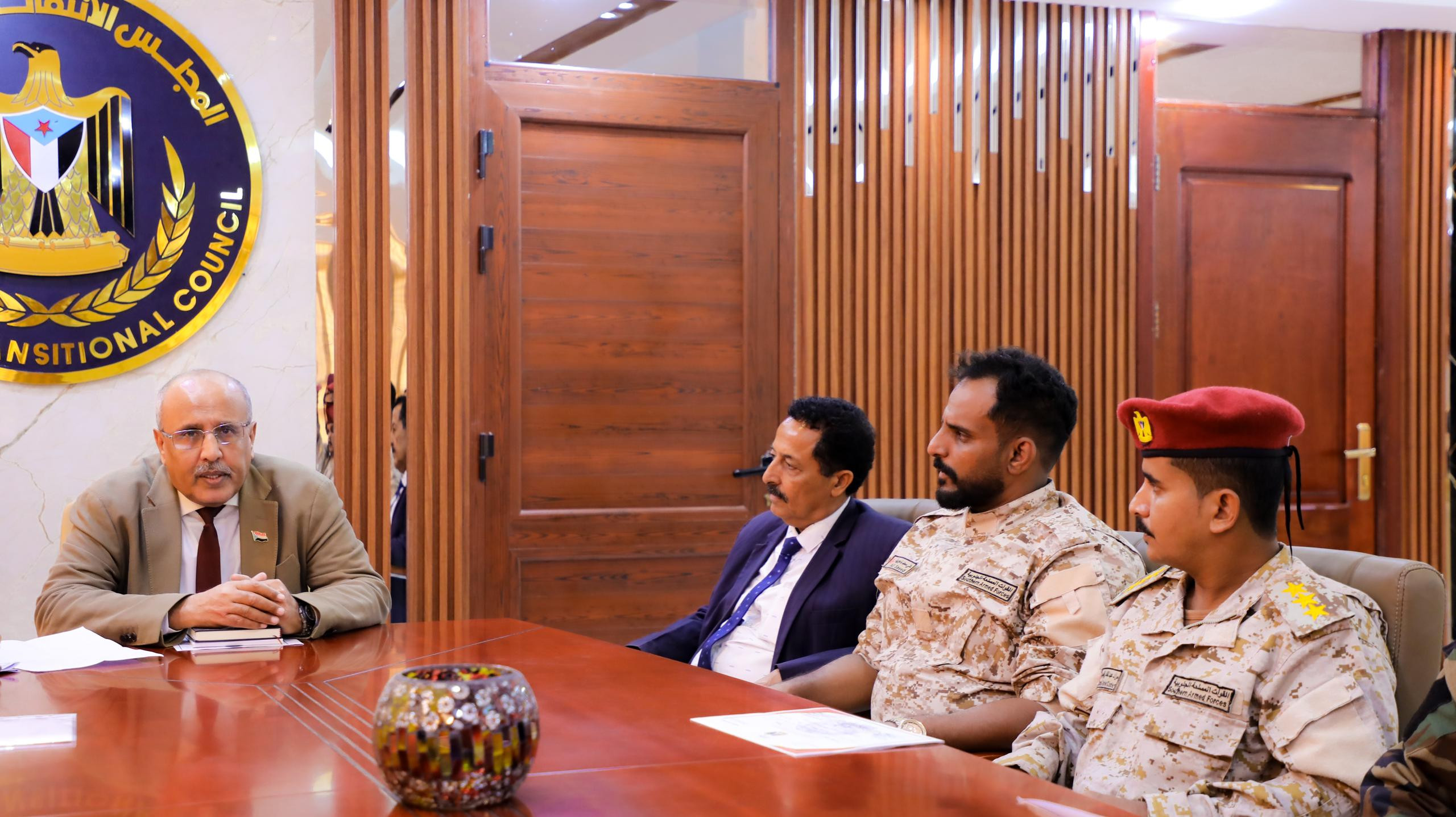 التقى الأستاذ علي عبدالله الكثيري، القائم بأعمال رئيس المجلس الانتقالي الجنوبي، رئيس الجمعية الوطنية، اليوم الإثنين، عدداً من ضباط النخبة الحضرمية الخريجين في دورات الكتائب الخامسة، ودورة السرايا والمشاة العاشرة، ودورة الدفاع الجوي السادسة، من معهد تدريب وتأهيل القادة والأركان بالعاصمة عدن، بقيادة نائب رئيس شعبة التوجيه المعنوي في القوات البرية الجنوبية، العميد وهيب صالح بن سلم.