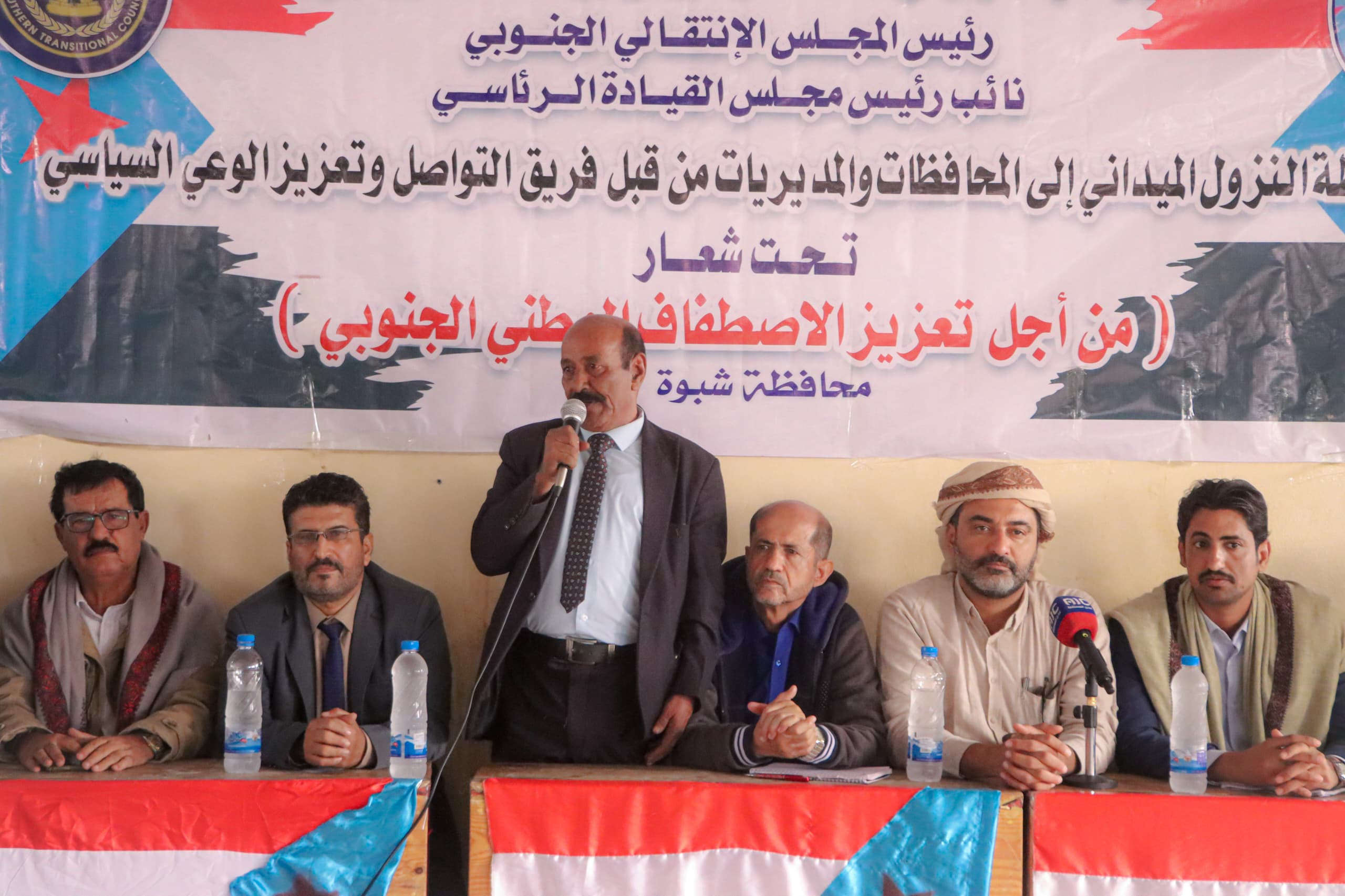 بدوره، أكد رئيس تنفيذية انتقالي شبوة، الشيخ لحمر بن لسود، أن الجنوب يمر بمرحلة مفصلية تتطلب مزيدًا من التلاحم والاصطفاف خلف المجلس الانتقالي الجنوبي، بقيادة الرئيس الزُبيدي، للحفاظ على المنجزات التي حققها خلال السنوات القليلة الماضية، في سبيل استعادة الدولة الجنوبية الفيدرالية.