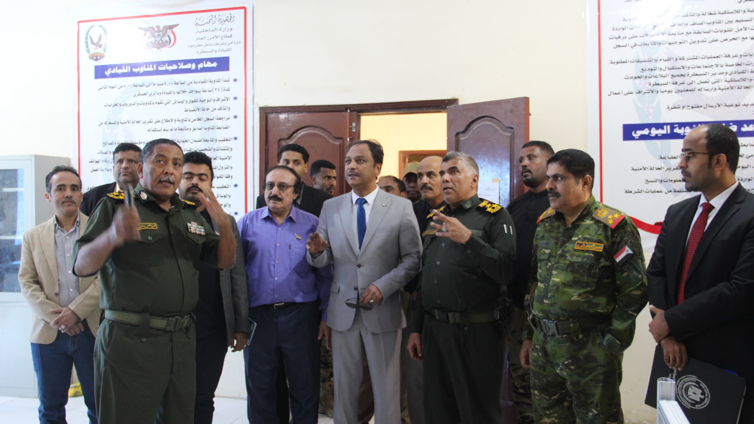 وفي إطار الزيارة، اطلع الفريق على غرفة القيادة والسيطرة بساحل حضرموت، مستمعين إلى شرح موجز من العميد حسن باعلوي، عن دور الغرفة وأهم الصعوبات التي تواجهها، كما تعرف الوفد على قاعة الفقيد أحمد سعيد المحمدي لتدريب وتأهيل الكوادر الأمنية.