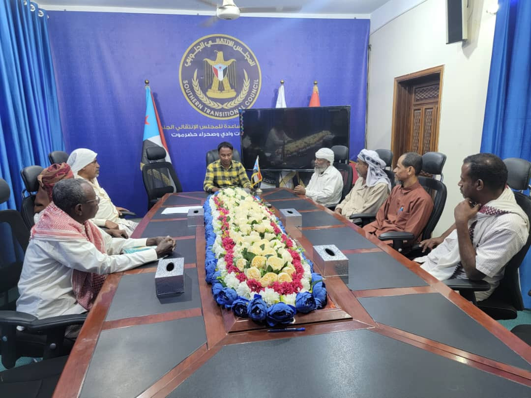التقى رئيس الهيئة التنفيذية المساعدة للمجلس الانتقالي الجنوبي لشؤون مديريات وادي وصحراء حضرموت، محمد عبد الملك الزبيدي، اليرم الخميس، في مقر الهيئة، أعضاء إدارة نادي الأحقاف بالغرف في مديرية تريم.
