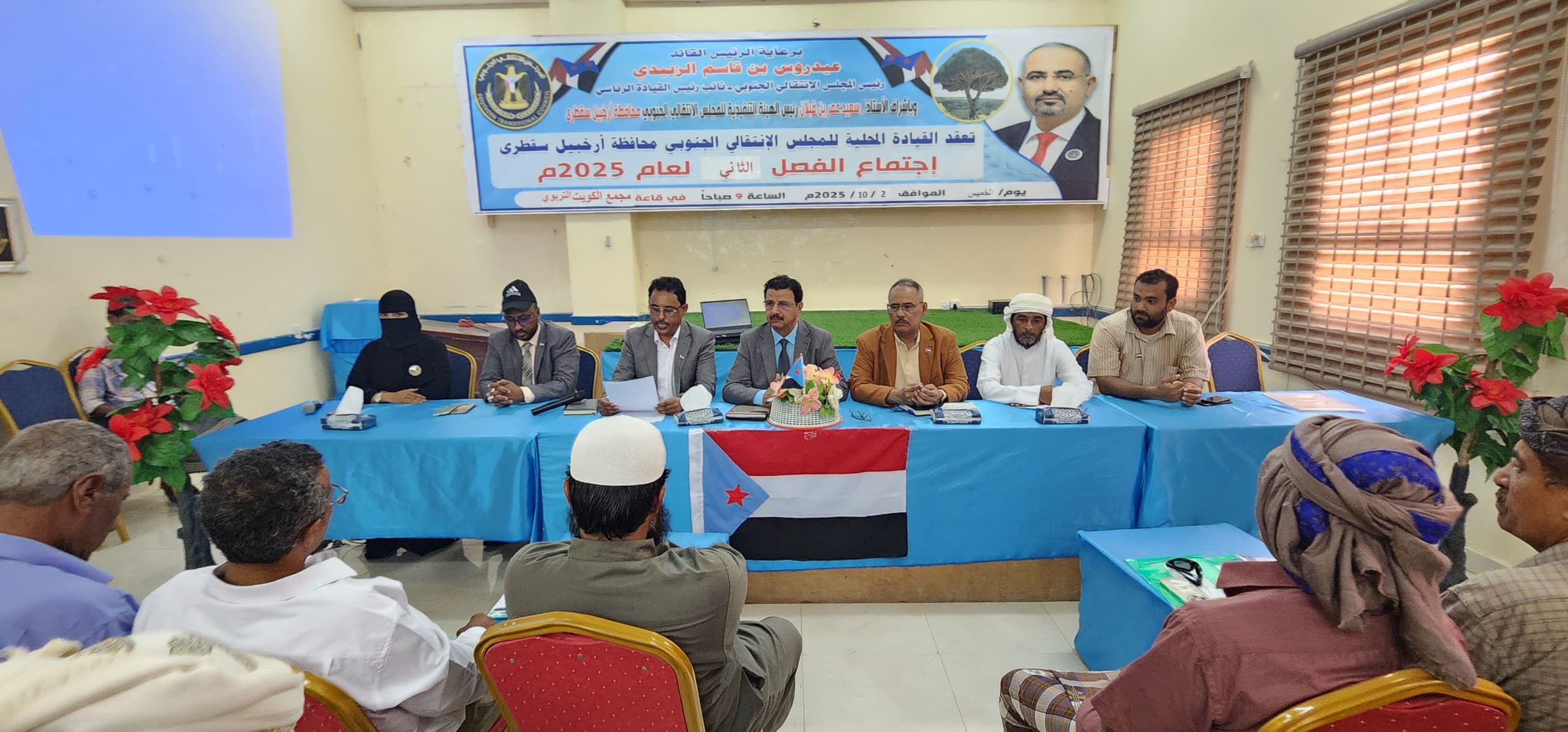 عقدت القيادة المحلية للمجلس الانتقالي الجنوبي في محافظة سقطرى، اليوم الخميس، اجتماعها الموسع للفصل الثاني من العام 2025، برئاسة رئيس الهيئة، سعيد عمر بن قبلان، وبحضور فريق التوجيه والرقابة الرئاسية، برئاسة الدكتور الخضر محمد السعيدي.