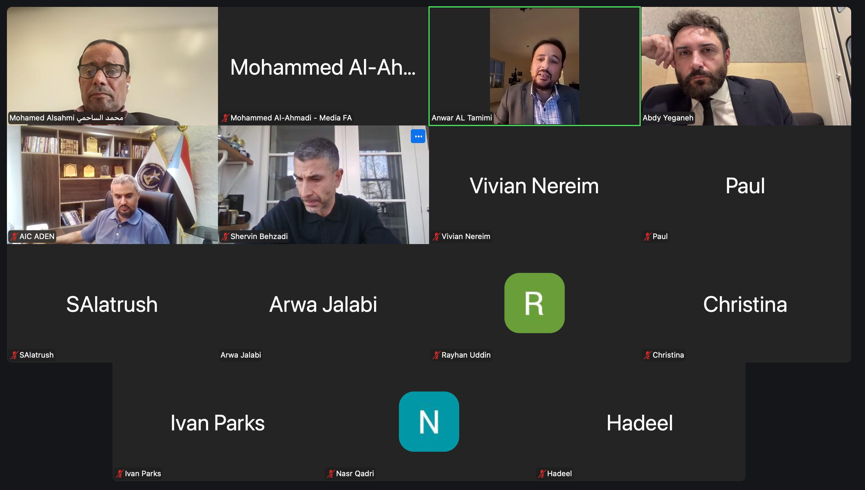 قدمت هيئة الشؤون الخارجية للمجلس الانتقالي الجنوبي اليوم، عبر الاتصال المرئي، إحاطة إعلامية موسعة شارك فيها ممثلو عدد من أبرز وسائل الإعلام الدولية، من بينها رويترز، وكالة الأنباء الفرنسية (AFP)، واشنطن بوست، نيويورك تايمز، ذي غارديان، ذي تايمز، أكسيوس، ذا ناشيونال، ميدل إيست آي، والعربي الجديد.