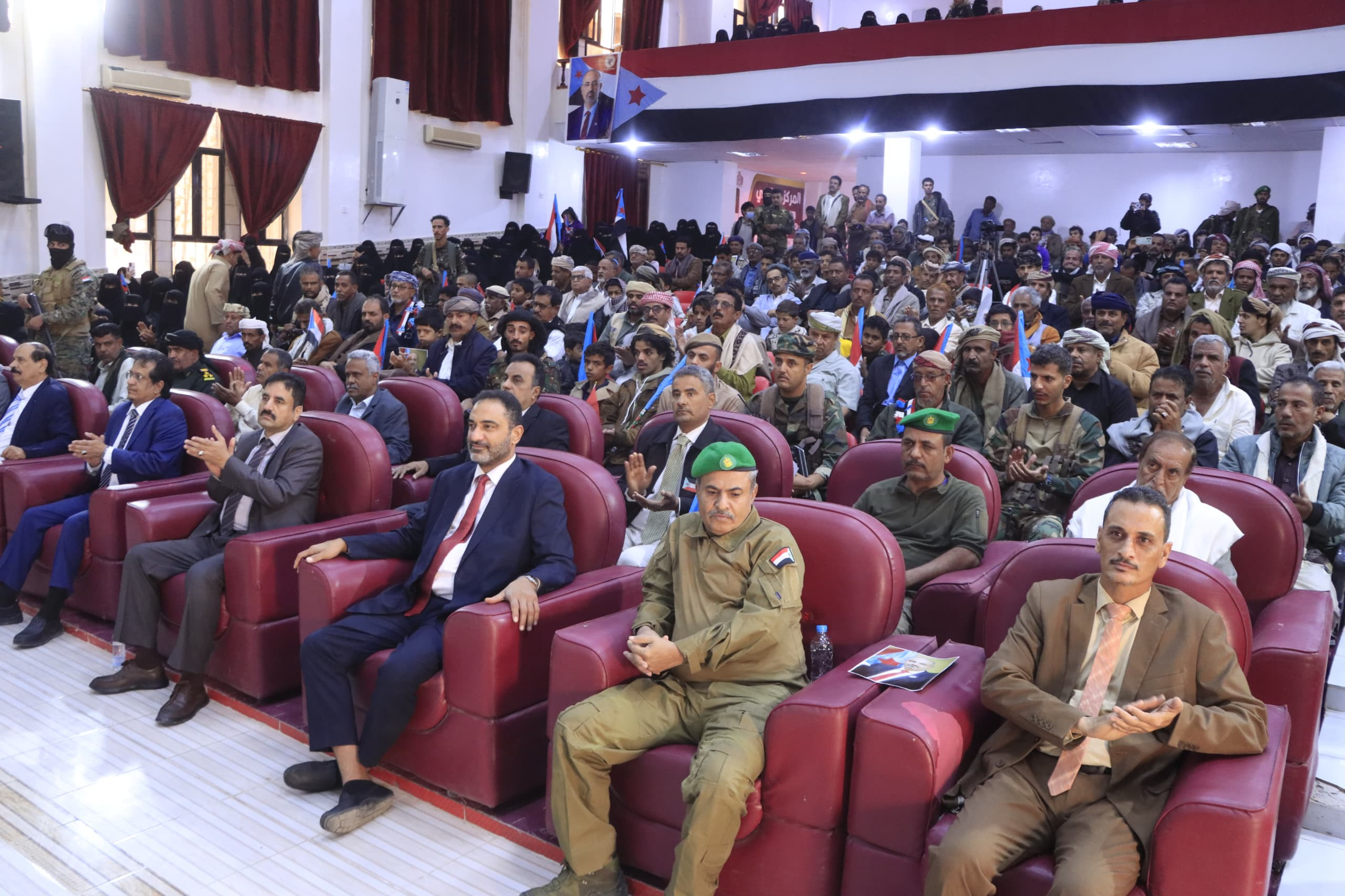 وشهد الحفل حضور عضوا هيئة رئاسة المجلس الانتقالي الجنوبي العميد علي أحمد الجبواني، وعبدالعزيز الجفري، وكلاء المحافظة فهد الذيب الخليفي، وأحمد الدغاري، وعلي محسن السليماني، وعيدروس باعوضة، وقائد الألوية البرية بالمحافظة العميد بكيل الكعلولي، وعدد من قيادات السلطة المحلية والأمنية والعسكرية.