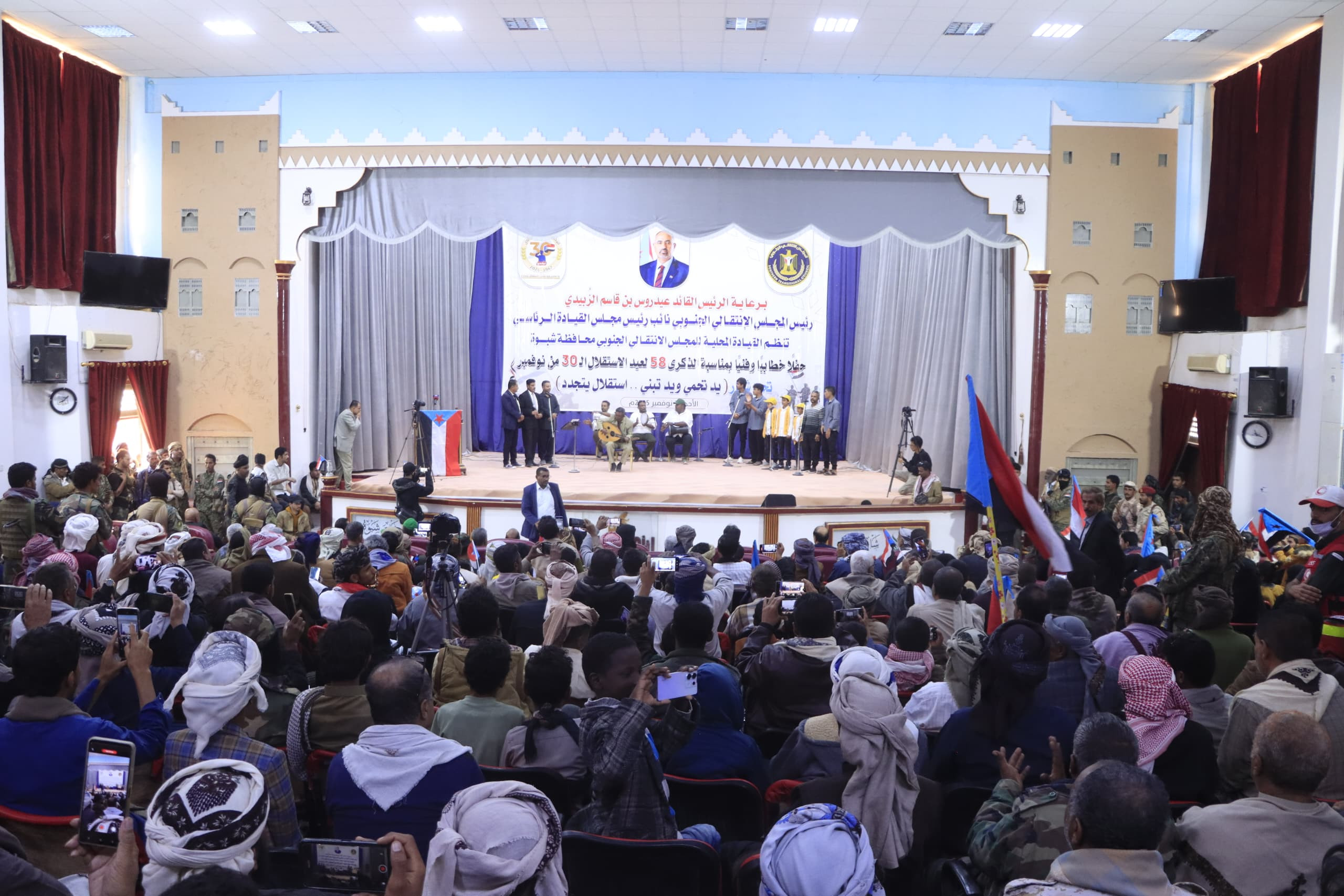 نظمت القيادة المحلية للمجلس الانتقالي الجنوبي بمحافظة شبوة، اليوم الأحد، حفلاً خطابياً وفنياً بمناسبة الذكرى الثامنة والخمسين لعيد الاستقلال 30 نوفمبر، تحت شعار: "يد تحمي ويد تبني.. استقلال يتجدد".