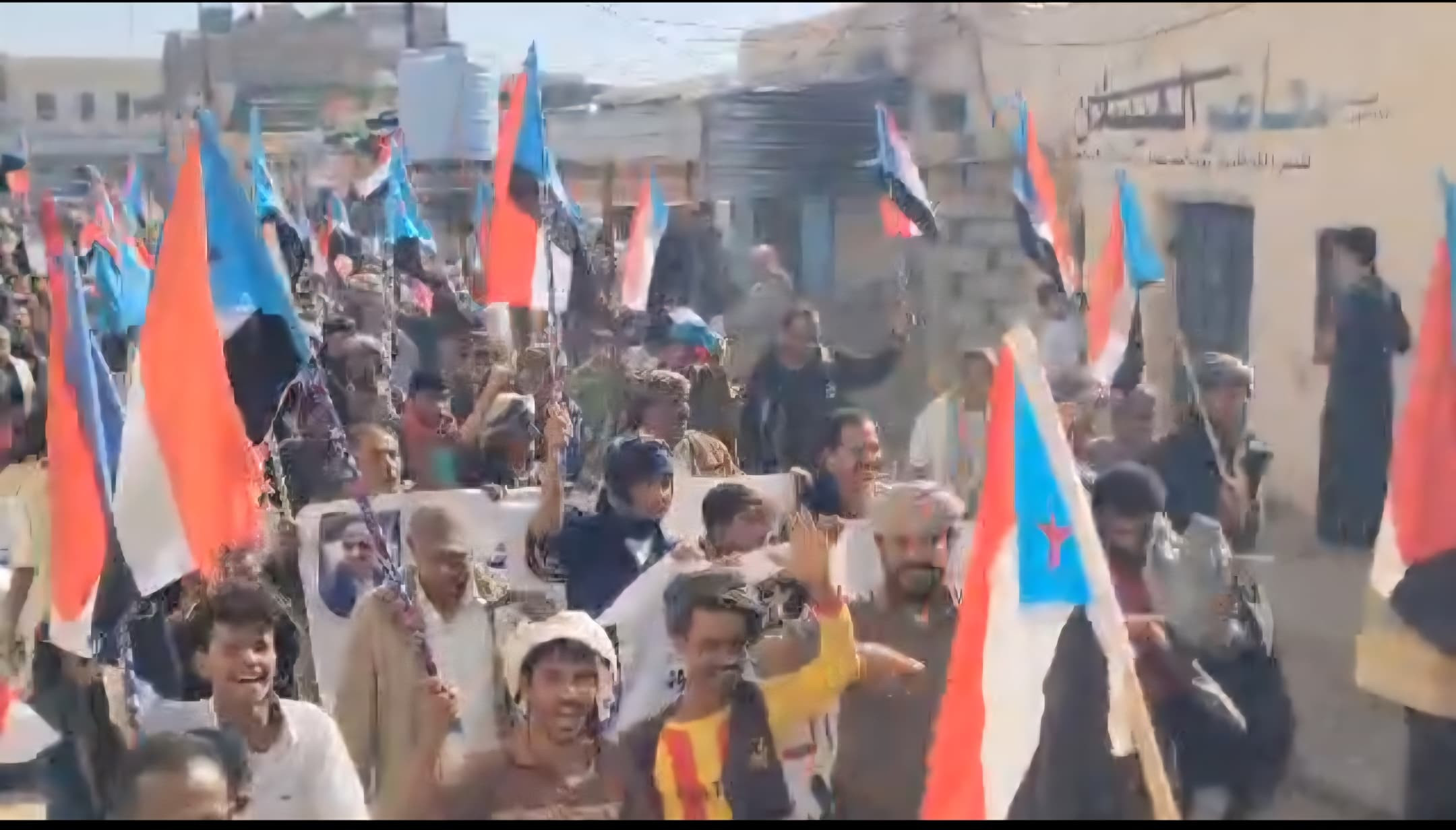 انتقالي رضوم ينظم مسيرة جماهيرية احتفالًا بانتصارات القوات الجنوبية في عارين وحضرموت