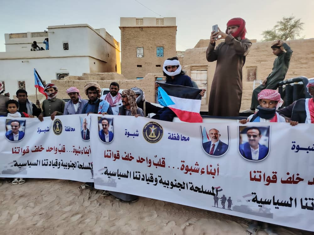 نظّمت القيادة المحلية للمجلس الانتقالي الجنوبي في مديرية دهر بمحافظة شبوة، اليوم السبت، مسيرة جماهيرية حاشدة، احتفاءً بالانتصارات التي حققتها القوات المسلحة الجنوبية ونجاح عملية "المستقبل الواعد" في تطهير وتحرير عارين بشبوة، ومديريات وادي وصحراء حضرموت.