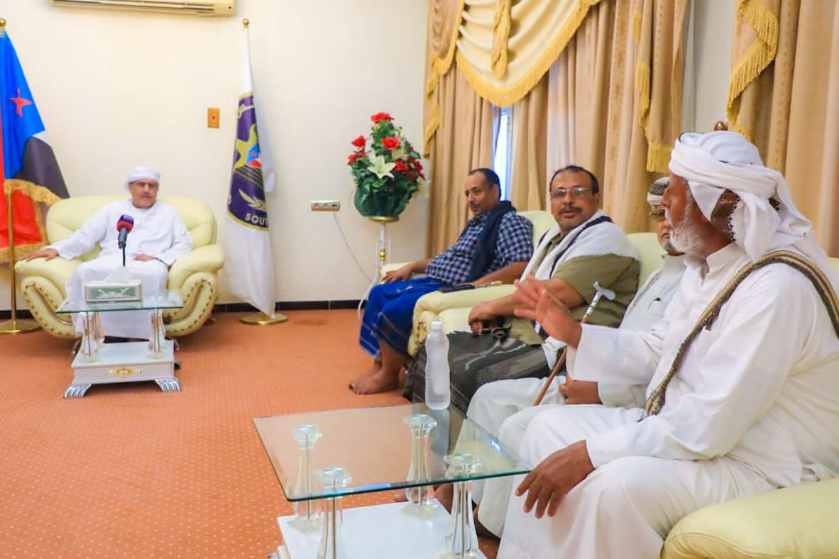 استقبل الأستاذ علي عبدالله الكثيري، رئيس الجمعية الوطنية للمجلس الانتقالي الجنوبي، اليوم الإثنين، وفدًا من مقادمة ومشايخ ووجهاء قبيلة بني تميم، وذلك في مقر إقامته بالقصر الرئاسي بمدينة سيئون.