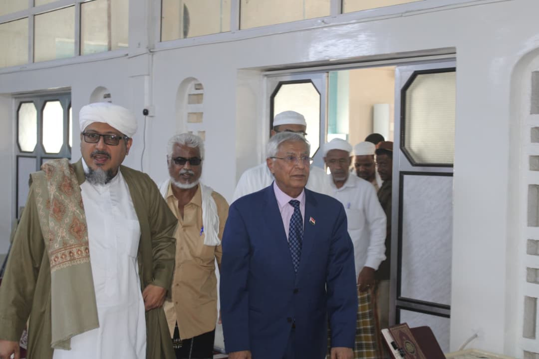 وعقب ذلك، واصل الفريق جولته بزيارة الجامع الكبير بمدينة الشحر، أحد أبرز المعالم الإسلامية والتاريخية في المنطقة، حيث كان في استقبالهم الشيخ العلامة ياسر محمد باعباد، الذي استعرض العمق التاريخي للجامع، والذي يعود تأسيسه إلى السنة العاشرة للهجرة، مؤكدًا دوره الريادي عبر العصور كمركز للإشعاع الديني والفكري في حضرموت.