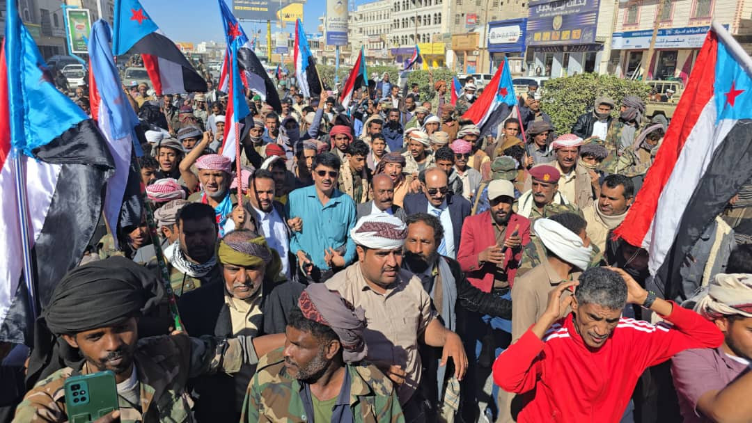 وتقدم المسيرة عضو هيئة رئاسة المجلس الانتقالي الجنوبي العميد علي أحمد الجبواني، ورئيس الهيئة التنفيذية للقيادة المحلية للمجلس الانتقالي الجنوبي بالمحافظة لحمر علي لسود، ووكيل المحافظة أحمد صالح الدغاري. في فعالية عكست حجم التفاعل الشعبي مع التطورات السياسية الراهنة.