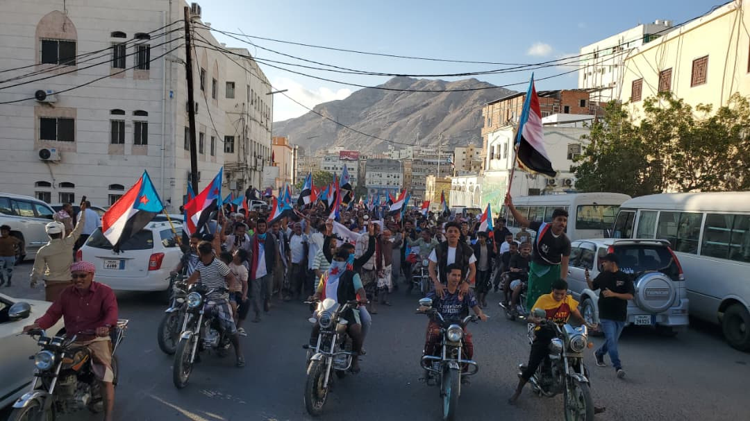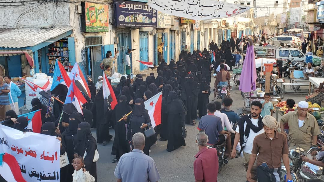شهدت مدينة المكلا، عاصمة محافظة حضرموت، عصر اليوم الخميس، فعالية جماهيرية حاشدة بعنوان الصمود والثبات شارك فيها الآلاف من أبناء المحافظة، عبّروا من خلالها عن تمسكهم بالهوية الجنوبية ودعمهم للمشروع الجنوبي، وتجديد التفويض للمجلس الانتقالي الجنوبي بقيادة الرئيس القائد عيدروس قاسم الزُبيدي، ورفضهم لأي محاولات تستهدف الالتفاف على إرادة شعب الجنوب أو تجاوز مؤسساته الوطنية.