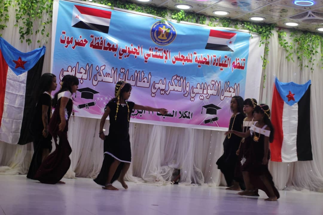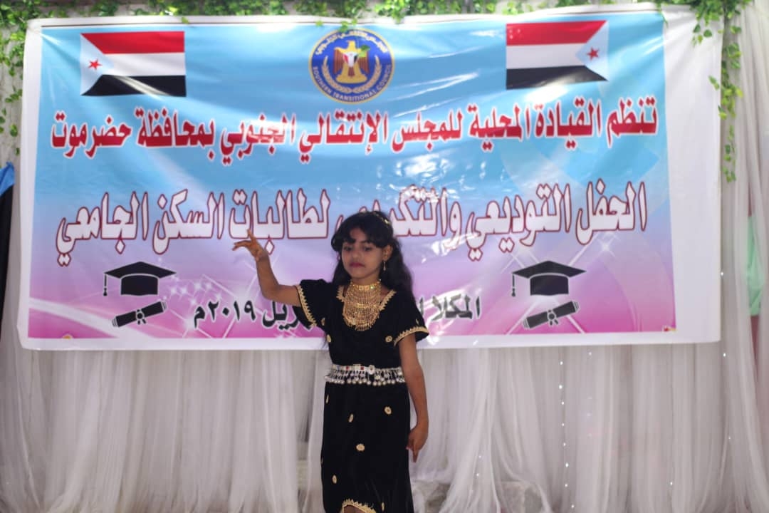 انطلاقا من دعم المجلس الانتقالي الجنوبي للمرأة ووقوفه إلى جانبها لانتزاع حقوقها، رعت القيادة المحلية للمجلس الانتقالي الجنوبي بمحافظة حضرموت، يوم السبت الماضي، الحفل التوديعي لطالبات السكن الجامعي بجامعة حضرموت .