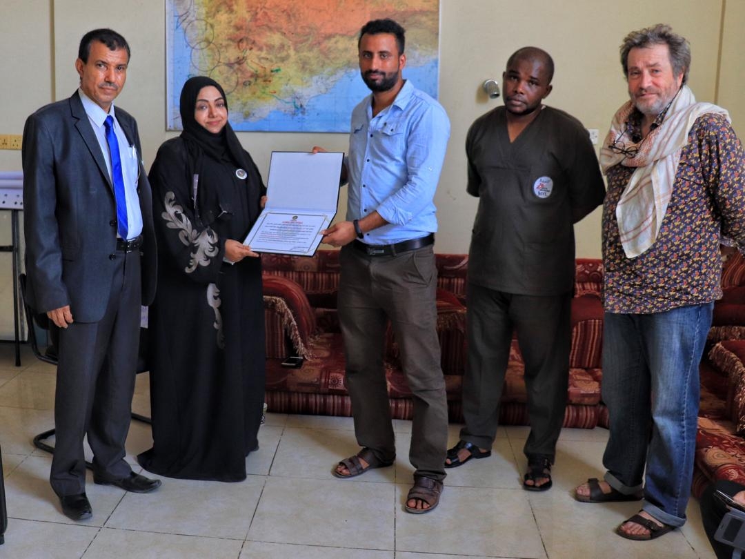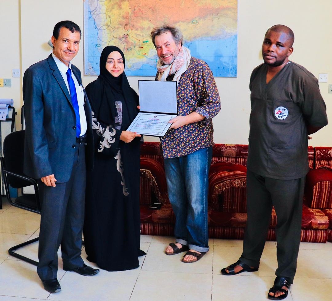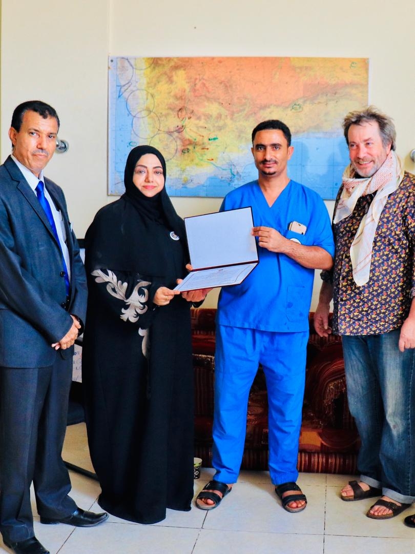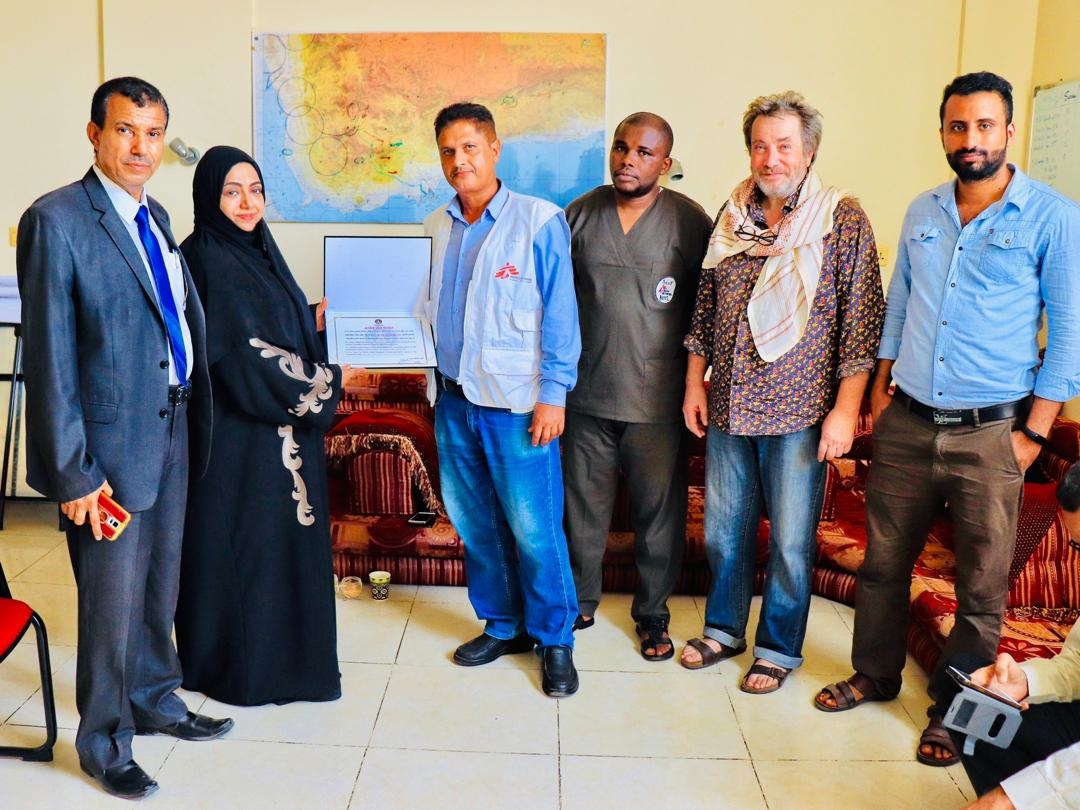 وجاء التكريم تقديراً للجهود التي يبذلها المستشفى في العاصمة عدن وكافة محافظات الجنوب والعمل الإنساني الذي يقوم به الفريق العامل في المنظمة في مناطق النزاع.