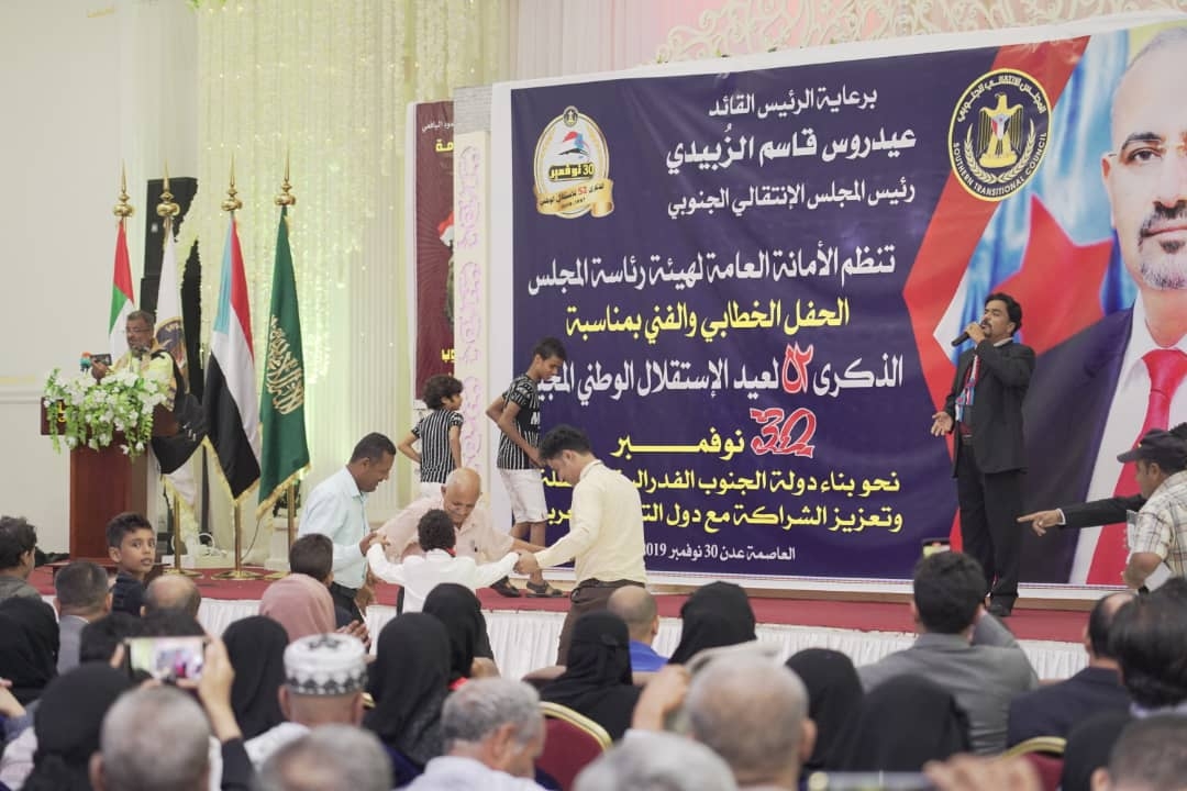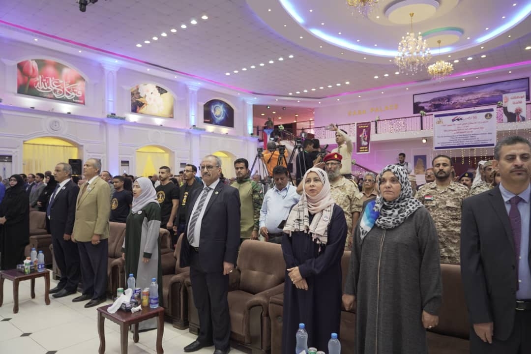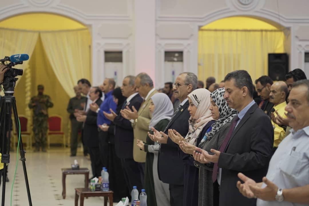وكان الحفل قد افتتح بآي من الذكر الحكيم، ثم بالنشيد الوطني الجنوبي، أعقبه الوقوف دقيقة حداد على أرواح الشهداء.